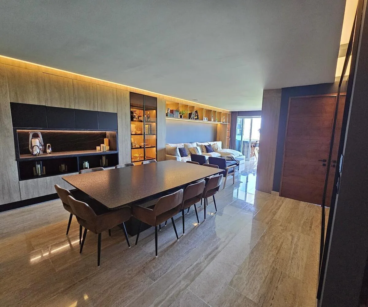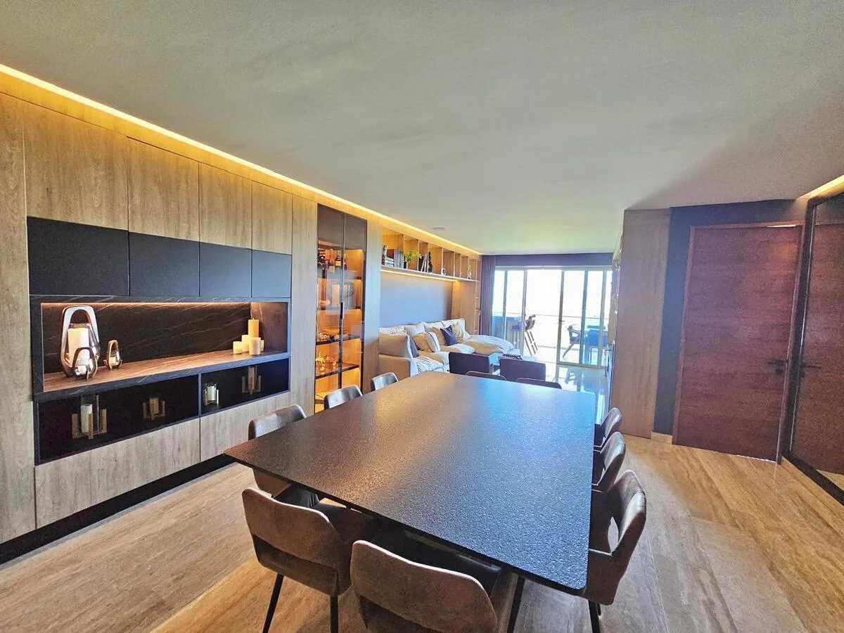 This spectacular apartment is located on the 9th floor and has been completely remodeled and furnished. The residence encompasses 199 square meters.