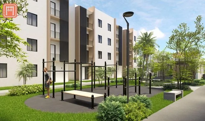 Located in a high-growth area, the property is surrounded by green areas and recreational spaces. It is close to schools, universities, shopping centers, and medical services.
