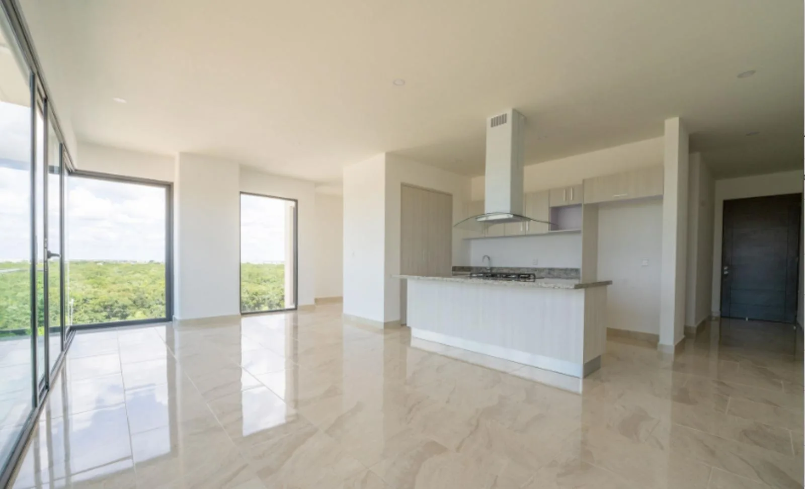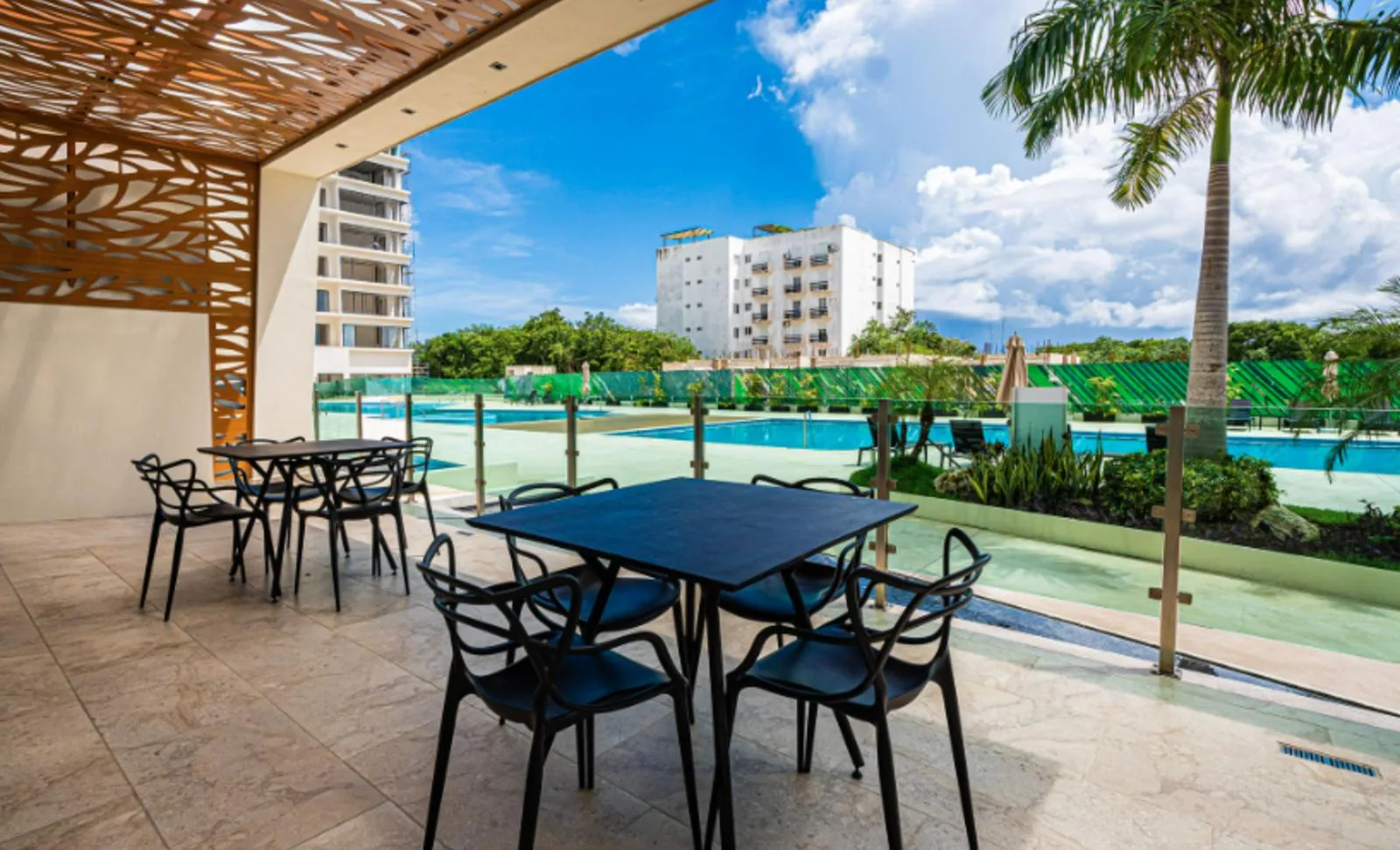 The location offers excellent connectivity. It is approximately five minutes from the Tren Maya station, ten minutes from the Cancún International Airport, and fifteen minutes from the Hotel Zone.