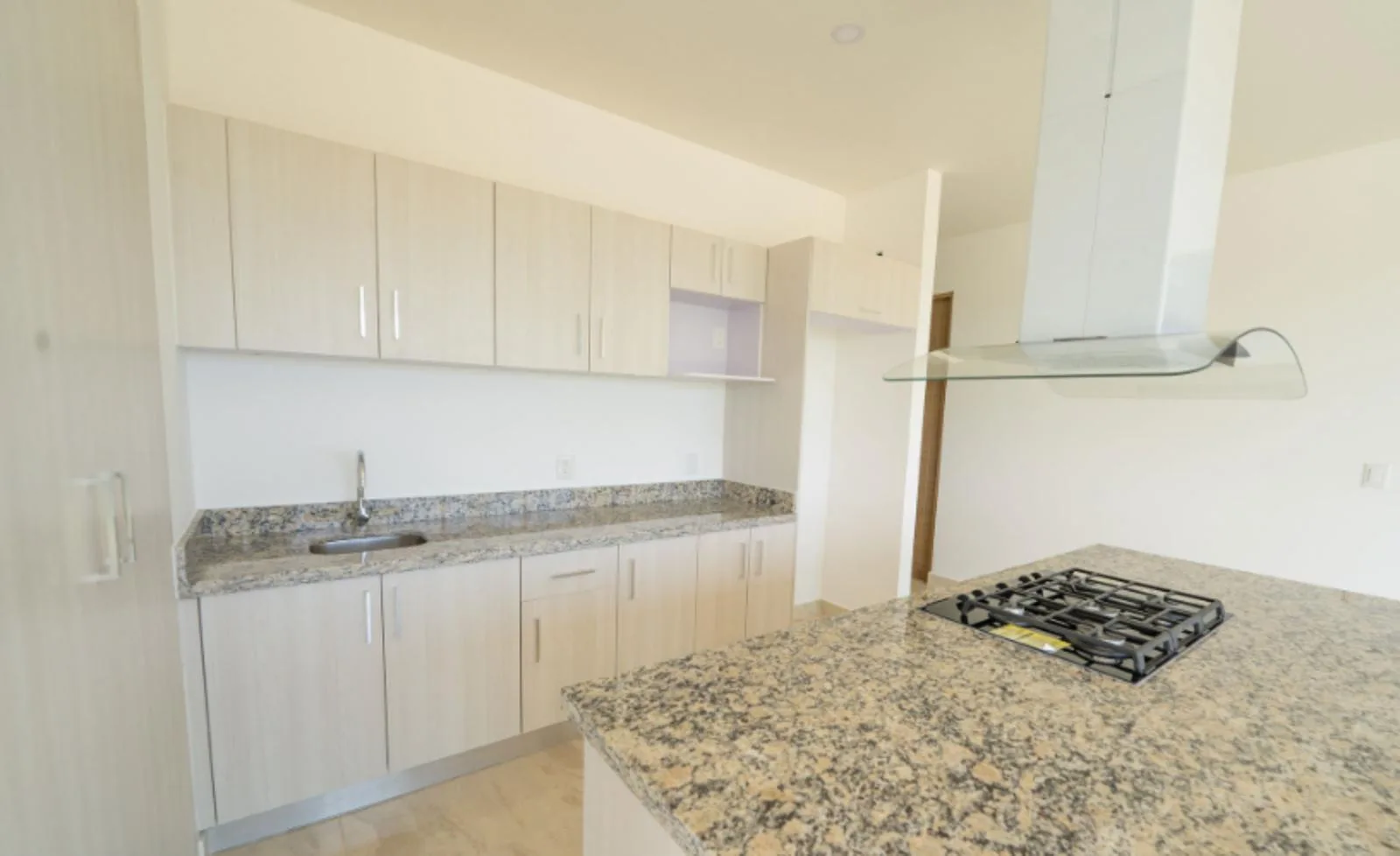 This property is a modern three-bedroom apartment located in the southern zone of Cancún. The unit includes two full bathrooms, an equipped kitchen, and a combined living and dining area. It features a private balcony.