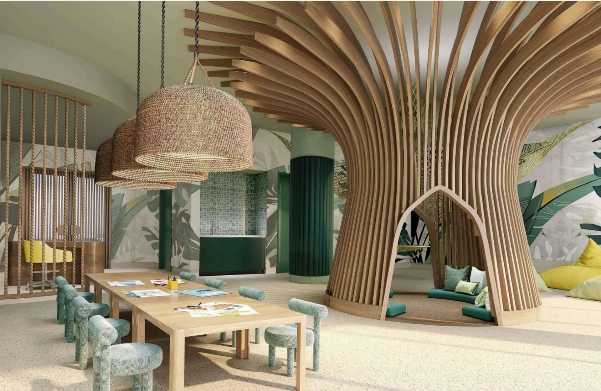Amenities include controlled access, 24/7 security, and a concierge. The private marina offers a pool, a club with bar and lounge, and a suite. Yacht and boat services are available. Additional facilities include a pool with lagoon view, a pool in the Isla area, a world-class spa with a pool, a fully equipped gym, a juice bar, a game room, a co-working space, and a children's play area.