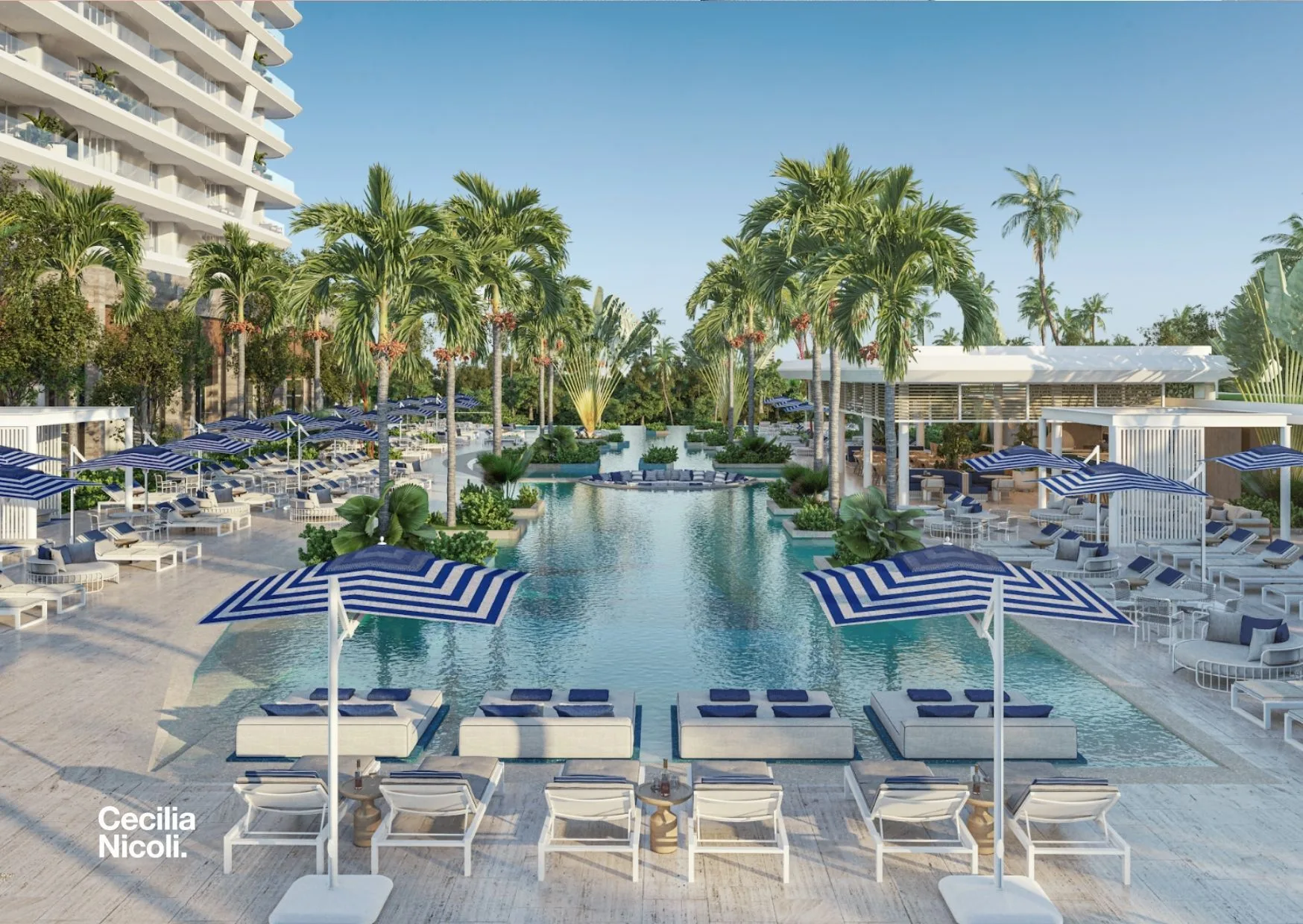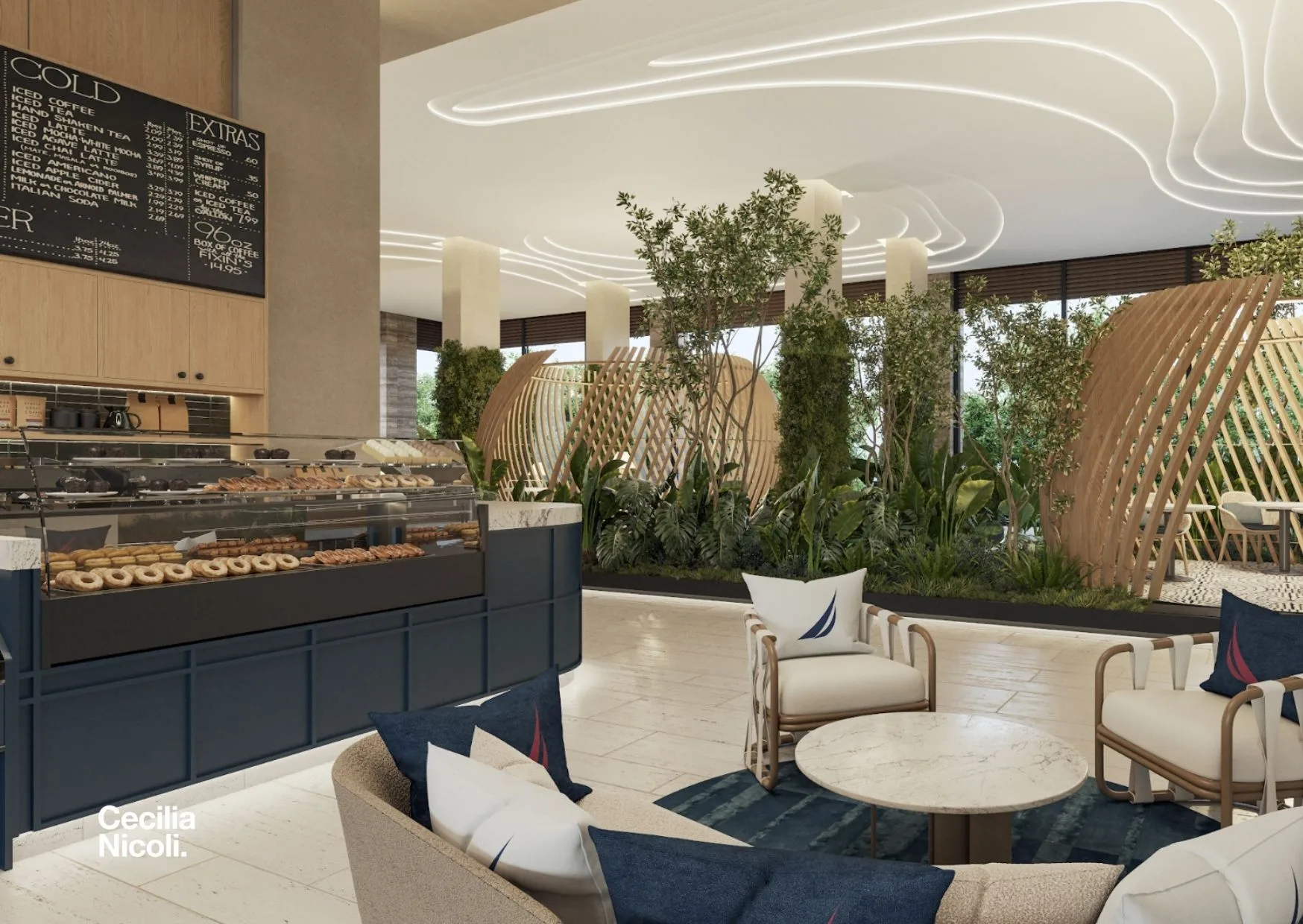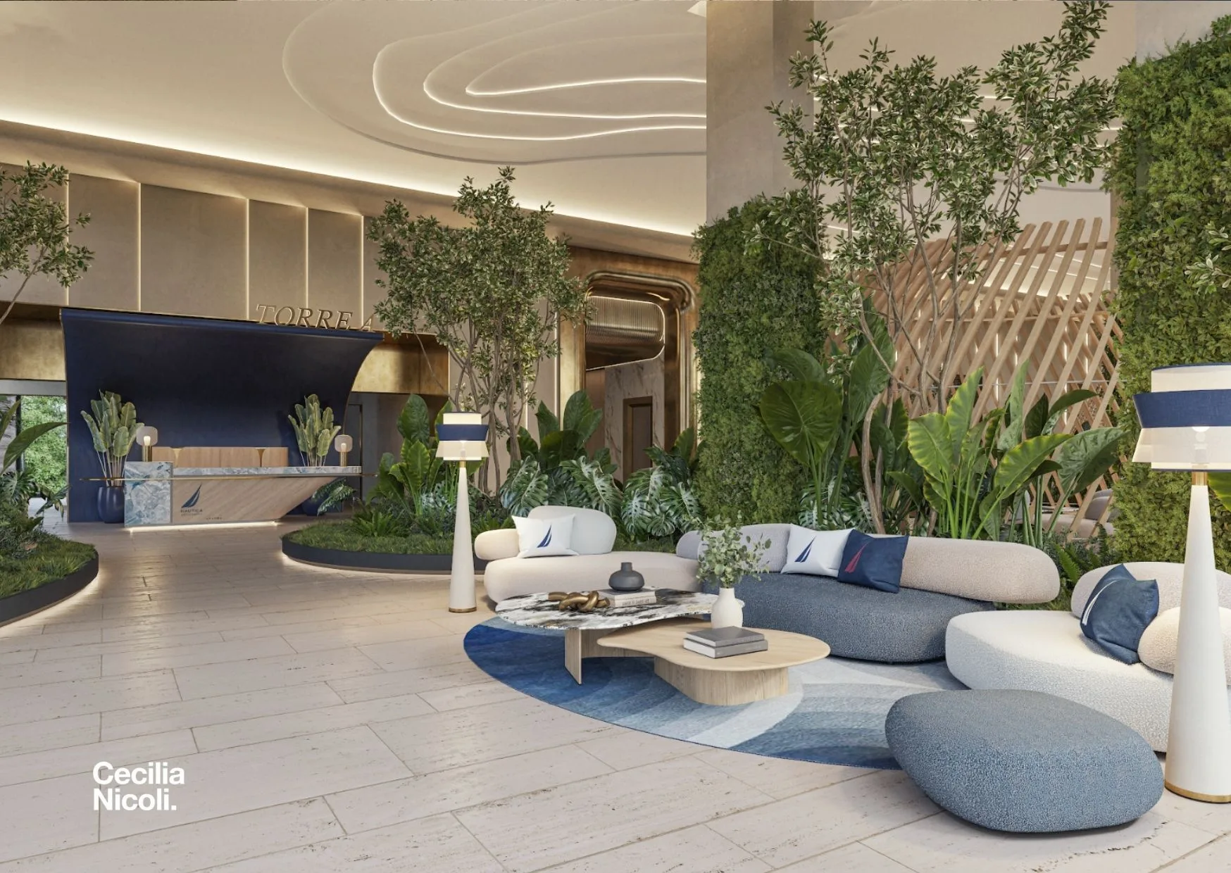 The property provides access to over fifty exclusive amenities. These include a Beach Club on Isla Blanca, sports courts, family swimming pools, and adult-only rooftop pools. Additional amenities consist of a swimming lane, a spa with a sauna and steam room, a cinema, a music hall, and a speakeasy bar. The development features restaurants and a cafeteria, co-working spaces, a pet spa, and valet parking with covered spaces.