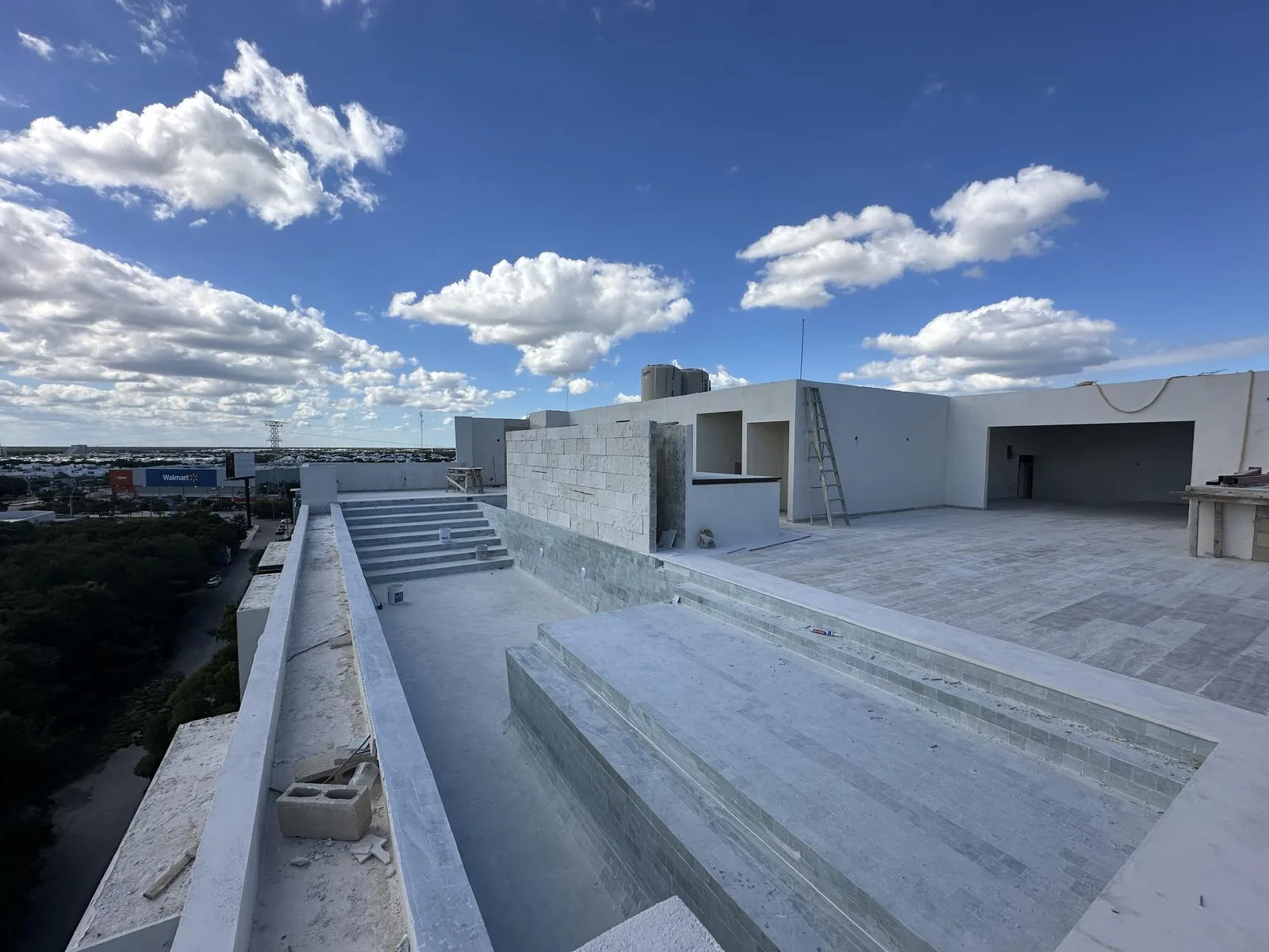 Nearby services include Walmart, City Club, Soriana, and AKÍ within 200 meters, a BBVA branch steps from the property, and numerous restaurants, cafes, schools, and shopping plazas in the area.