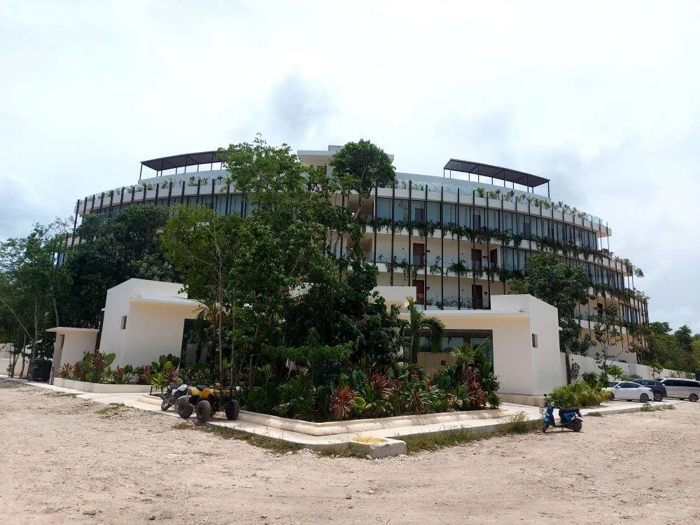 This studio apartment is for sale in a prime area of Tulum, situated just a couple of blocks from Kukulkan Avenue and approximately five minutes from both the beach and the town center. The unit has a surface area of 45 square meters.