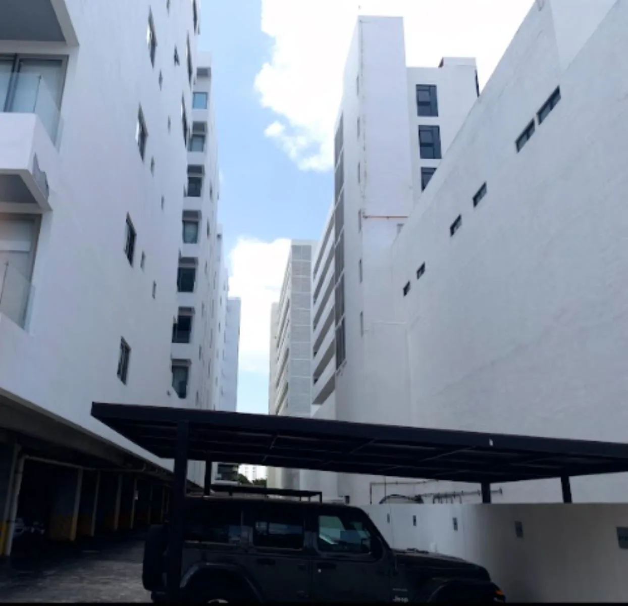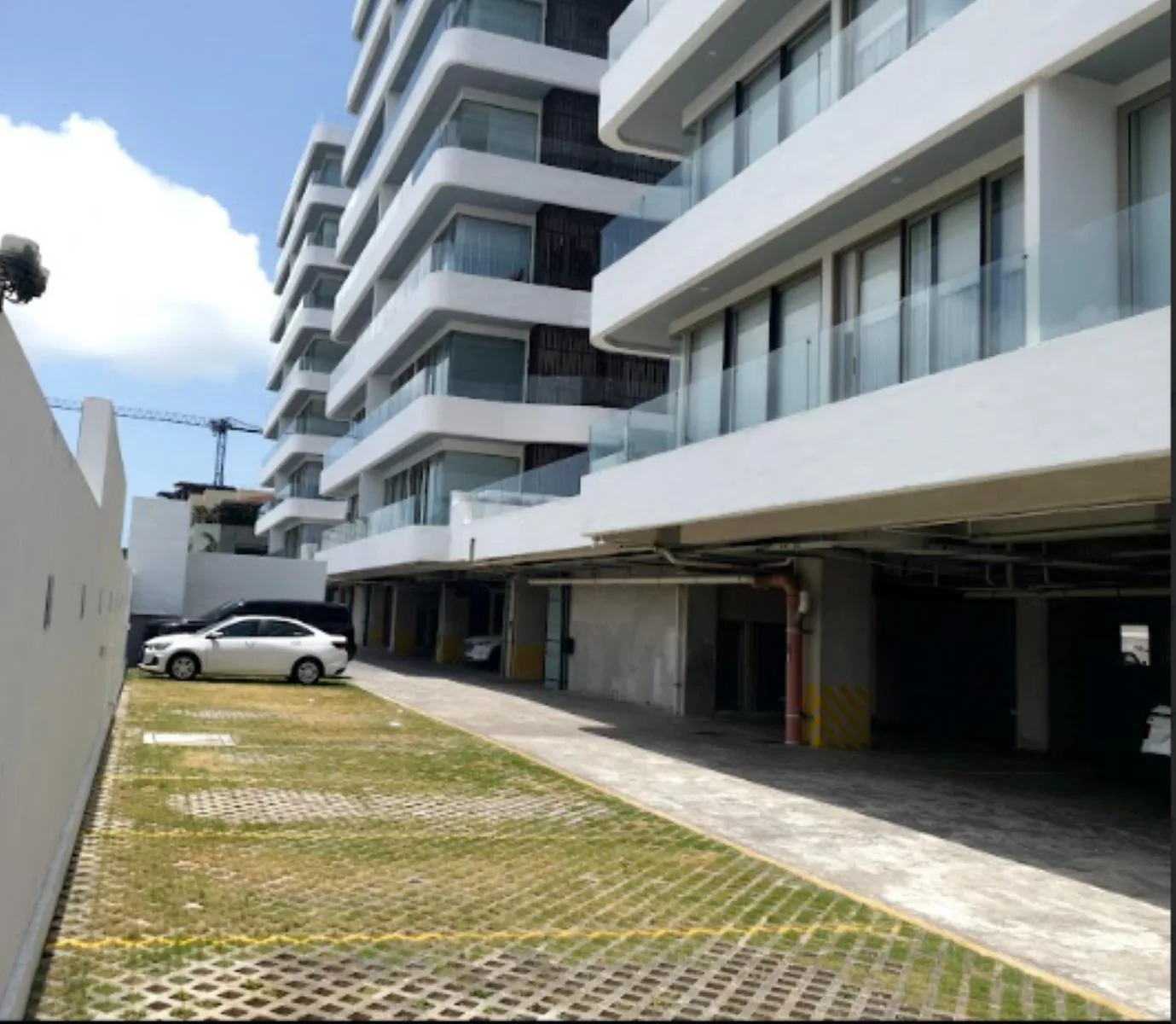 Building features include private parking, a security booth, private storage rooms, and service areas. The lobbies have controlled access, and there are green areas and common use spaces. Each tower has its own private lobby with limited access for authorized visitors and residents.