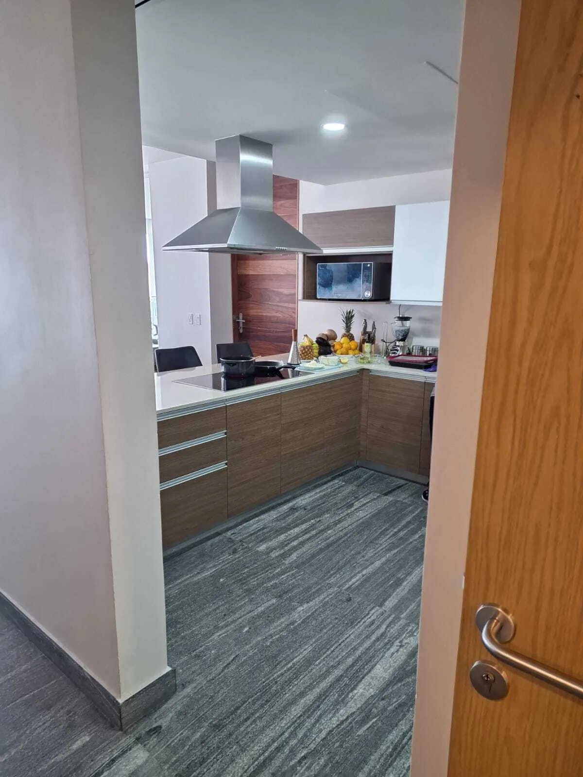 Upon entry, a spacious and bright lobby with design details welcomes guests. Central air conditioning is installed throughout the property. The apartment is sold unfurnished and includes a ventilation system for air circulation.