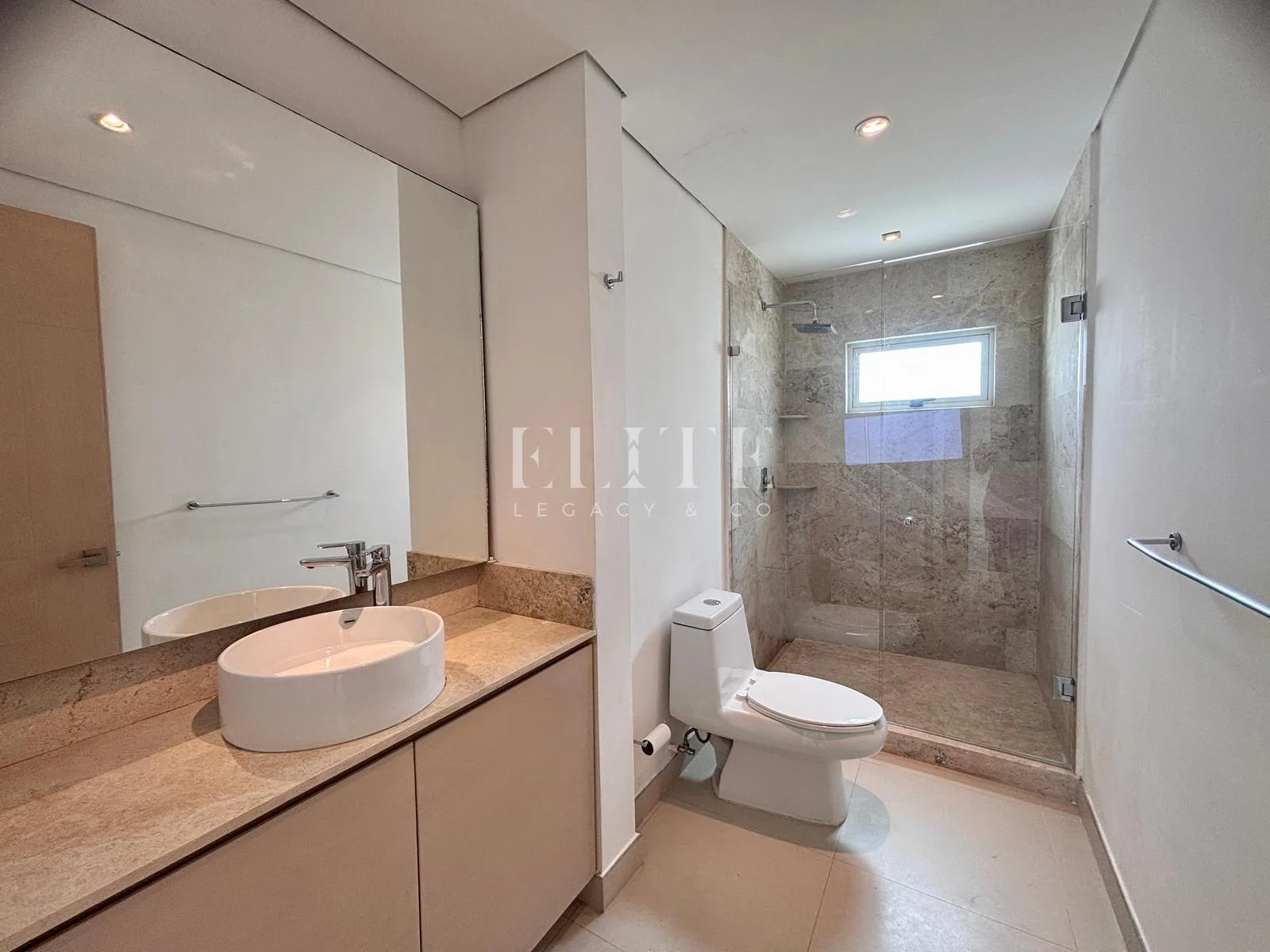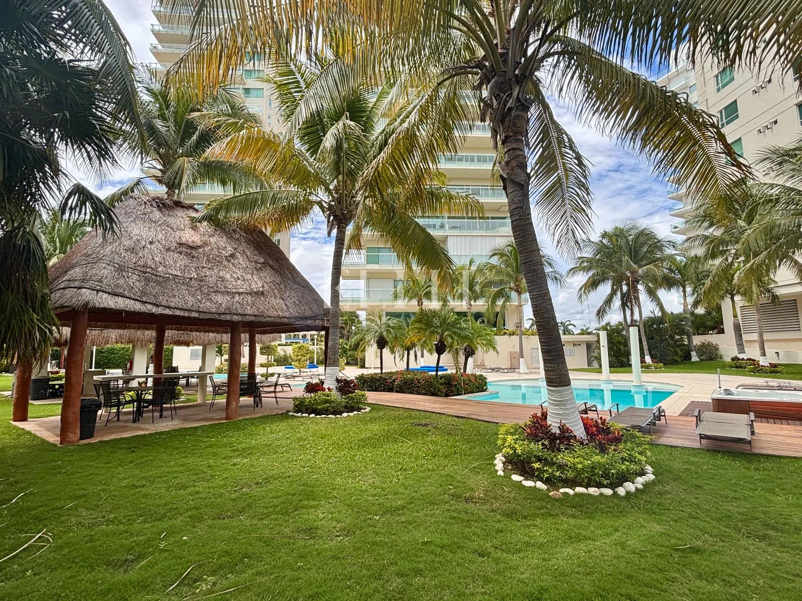 This elegant three-bedroom apartment is situated on Avenida Bonampak in Cancún, providing convenient proximity to the Hotel Zone, Puerto Cancún, and the city's main thoroughfares. The residence boasts direct views of the Caribbean Sea from the living room, dining room, and master bedroom. It features spacious layouts, abundant natural light, and contemporary finishes throughout.