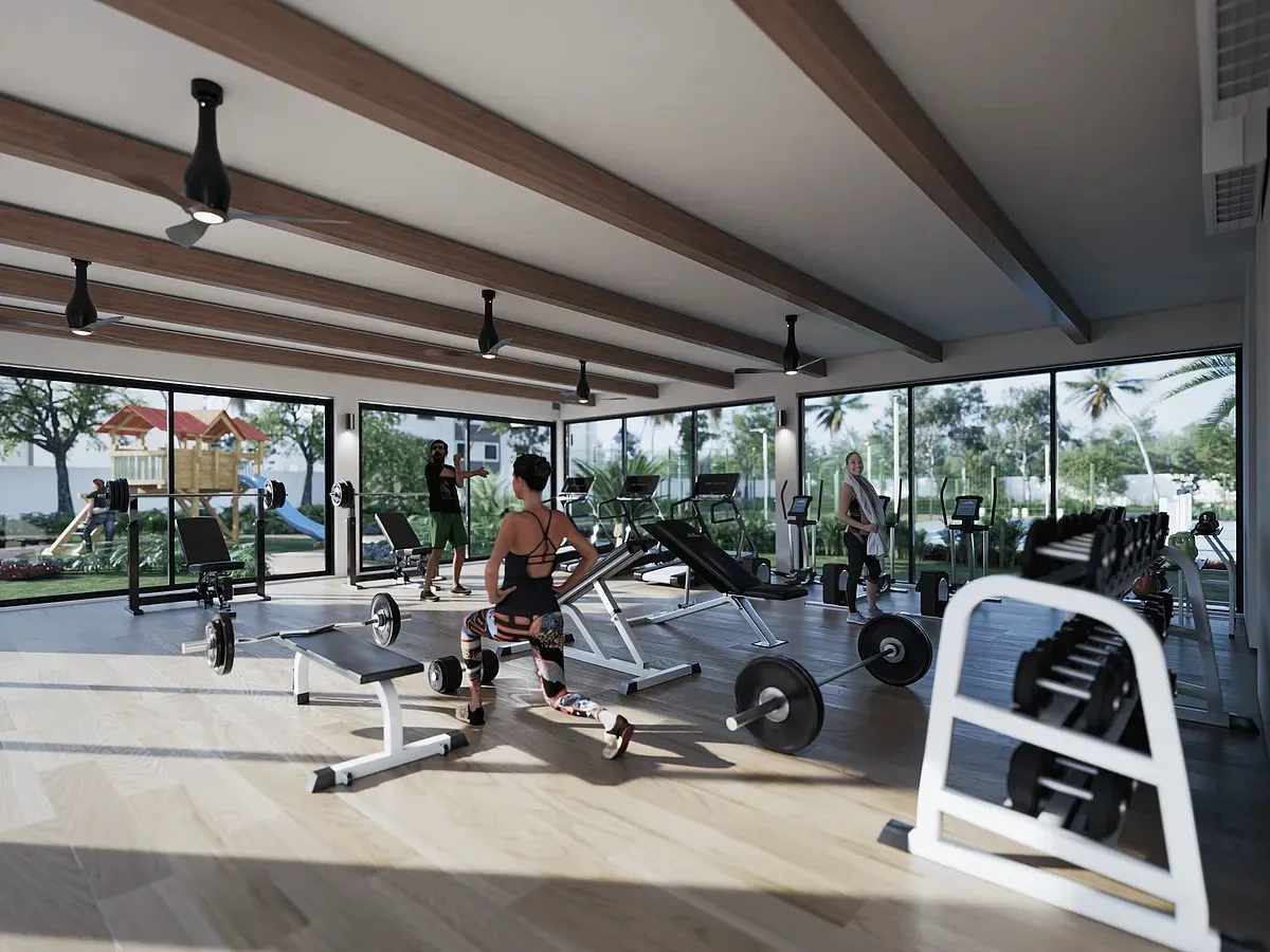 The property is situated in one of the fastest-growing zones of Cancún. It is part of a development that features a swimming pool, a gym, green areas, and sports courts.