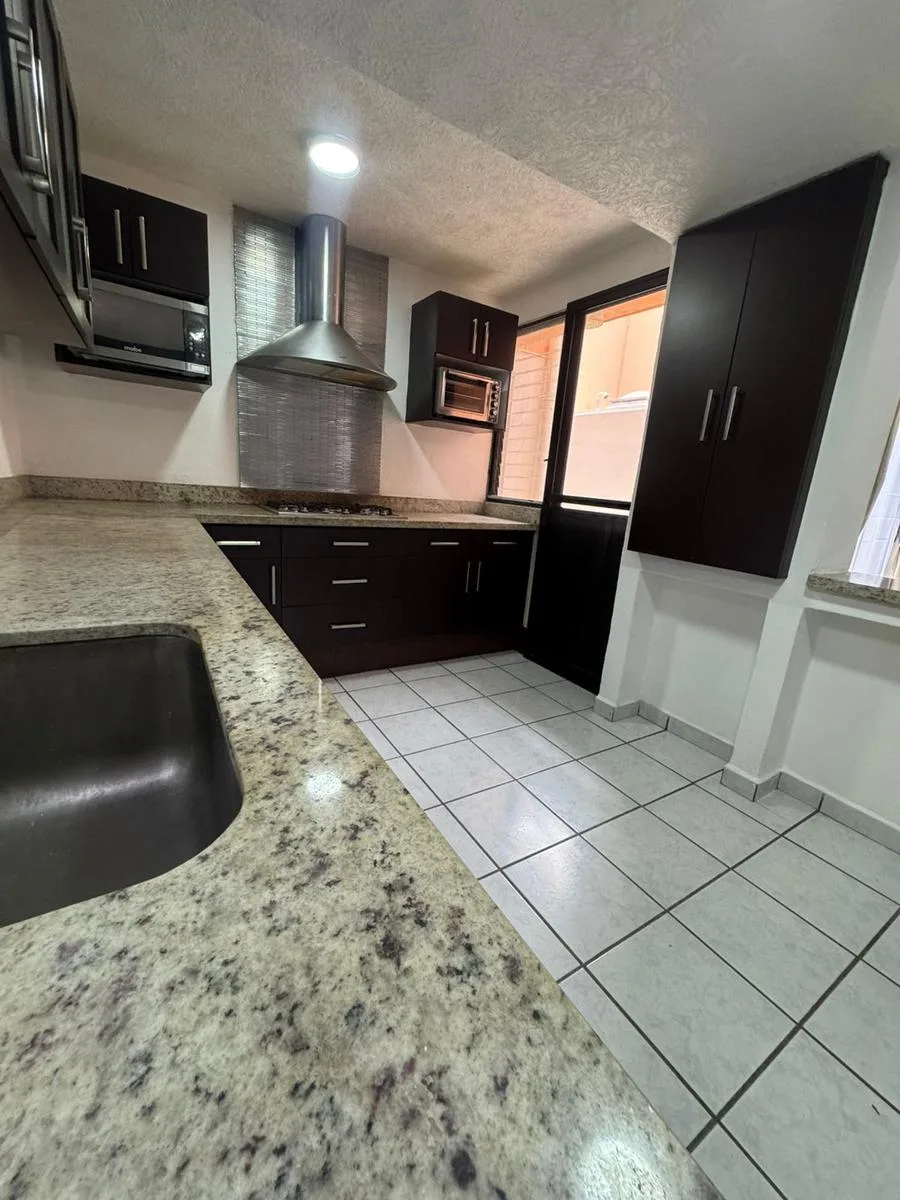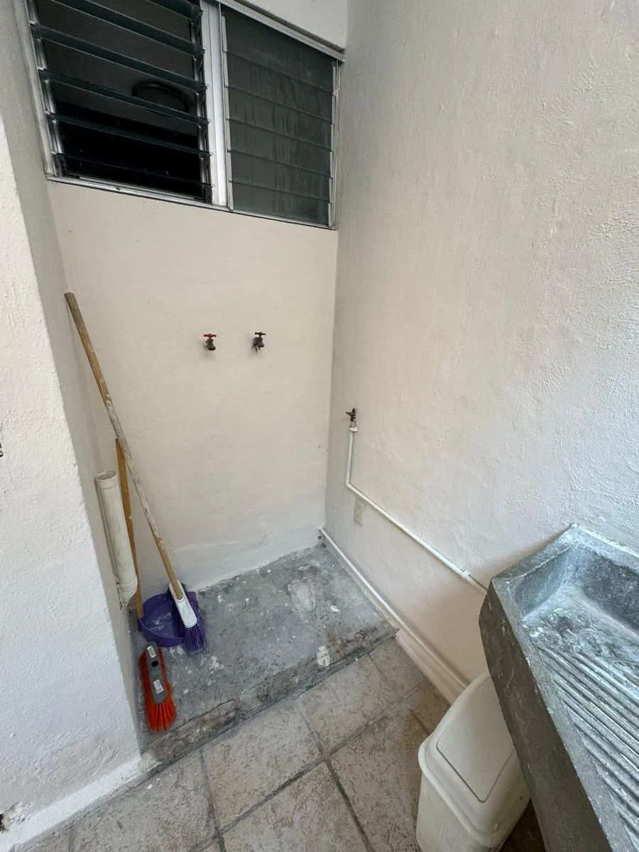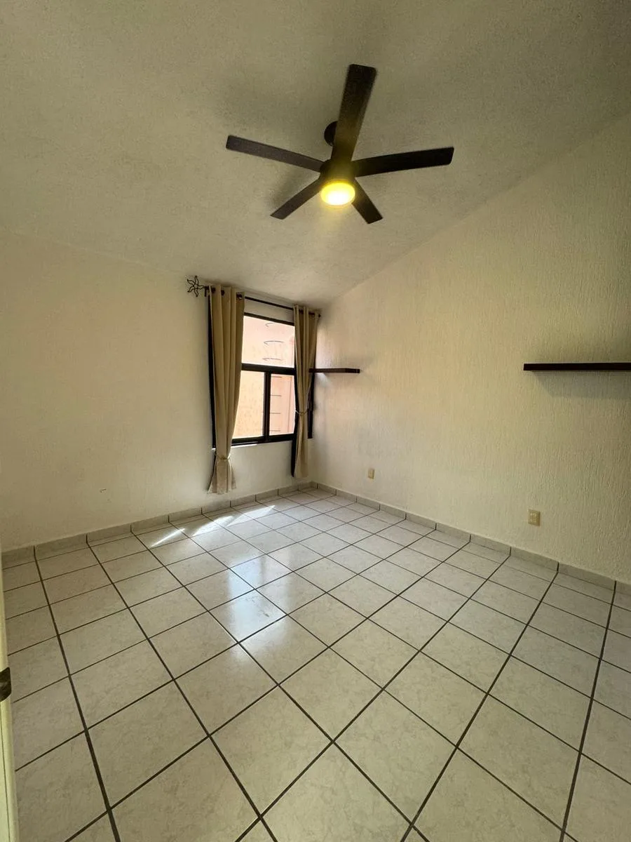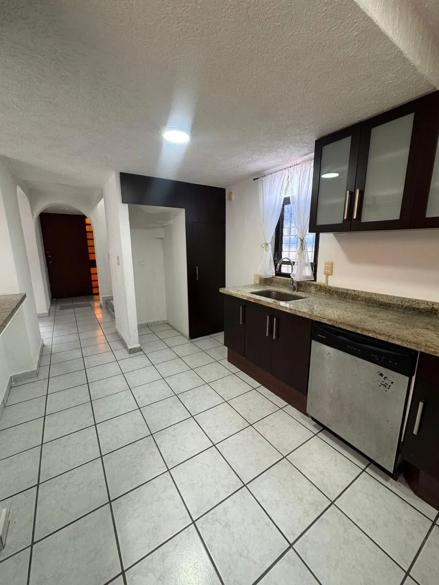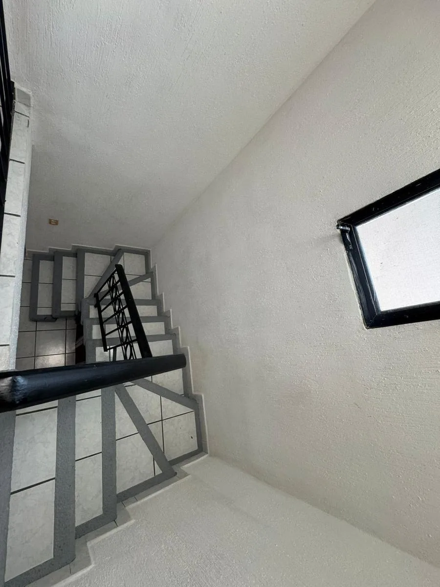 Residential amenities offer covered parking for two cars, a 24/7 security booth, a communal pool, a palapa, and sunbeds. The property is situated in the central SM 18 area.