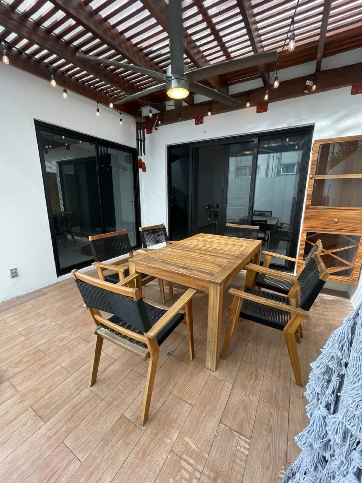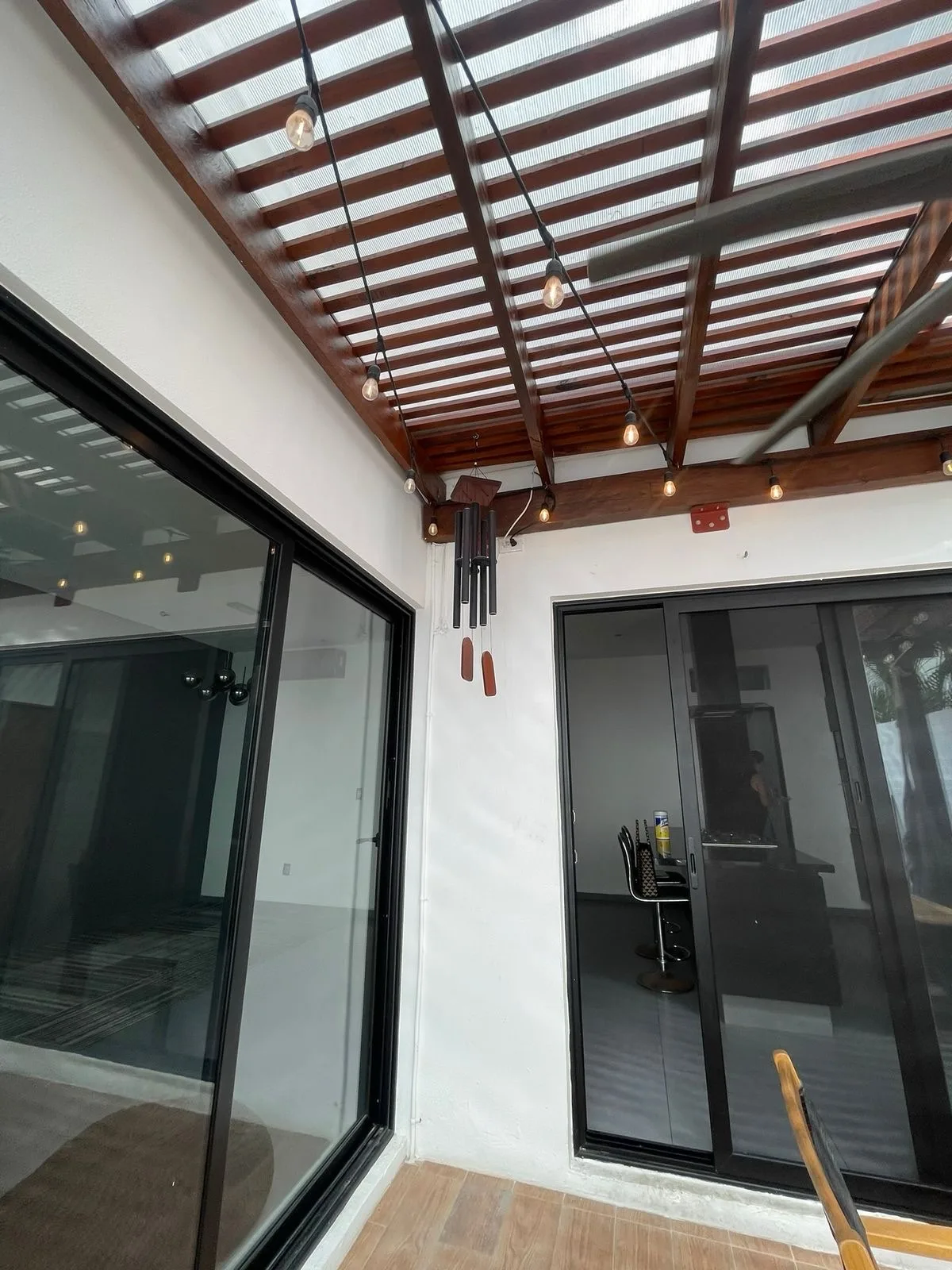 The house is fully air-conditioned. It is equipped with solar panels and includes a dedicated laundry room. The property is enclosed by a perimeter wall facing the plaza.