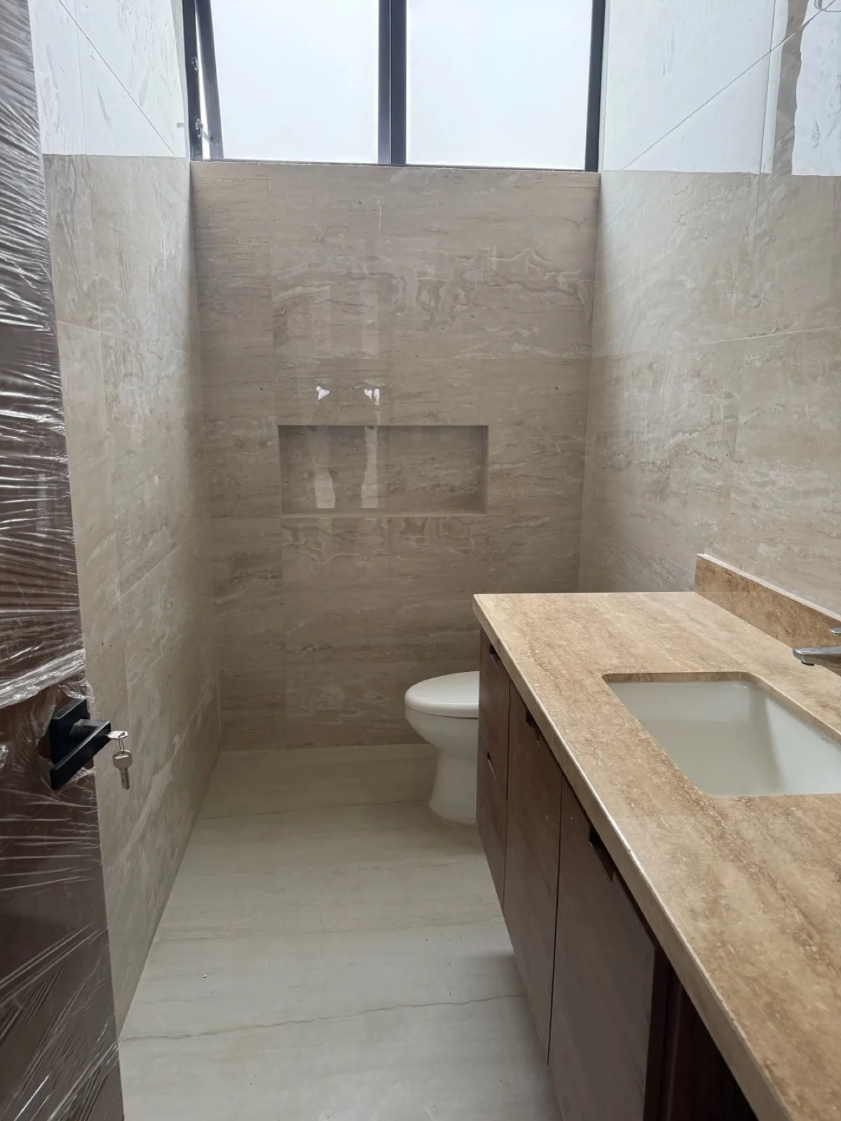The Lagos del Sol community offers amenities including a clubhouse with a semi-olympic pool, children's pool, two tennis courts, a squash court, a basketball court, a cafeteria, steam baths, and a multi-purpose hall. There is 24-hour security with a guardhouse and surveillance cameras.