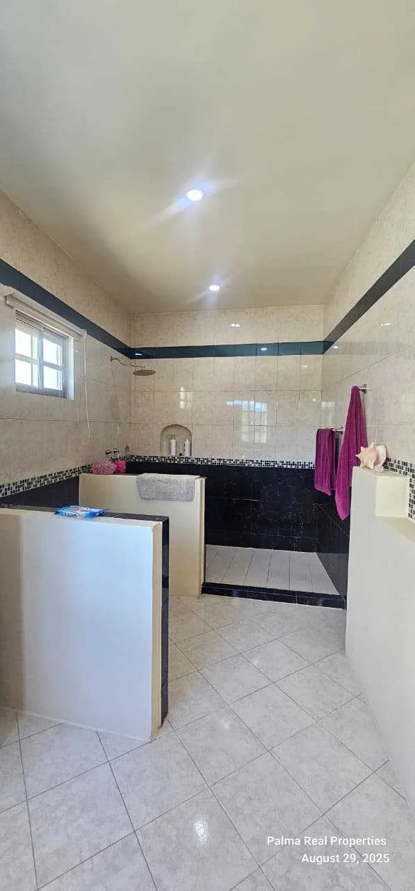 The home features five spacious bedrooms and four and a half bathrooms, designed for comfort and functionality. Details include a modern kitchen with high-end finishes and newly designed bathrooms.