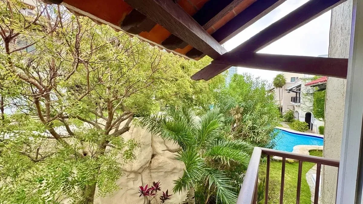 A private terrace provides direct access to a communal garden, ideal for enjoying Cancún's climate. Private parking is available for one vehicle. The home's infrastructure includes a 5, 000-liter cistern with a pump and a hydro-pneumatic system to ensure a consistent water supply.