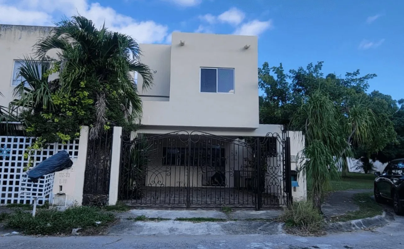 This property is located on a corner plot in the Residencial area, featuring a double security cabin and providing access to Huayacán Avenue and Luis Donaldo Colosio Avenue. The two-level construction is situated next to a park.