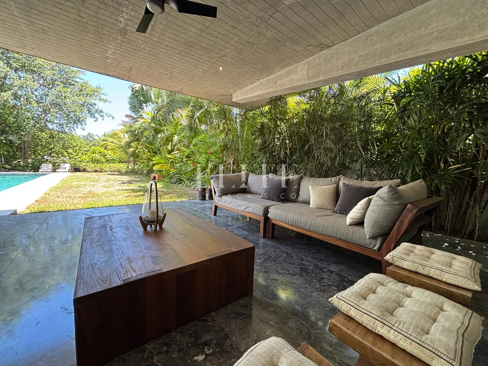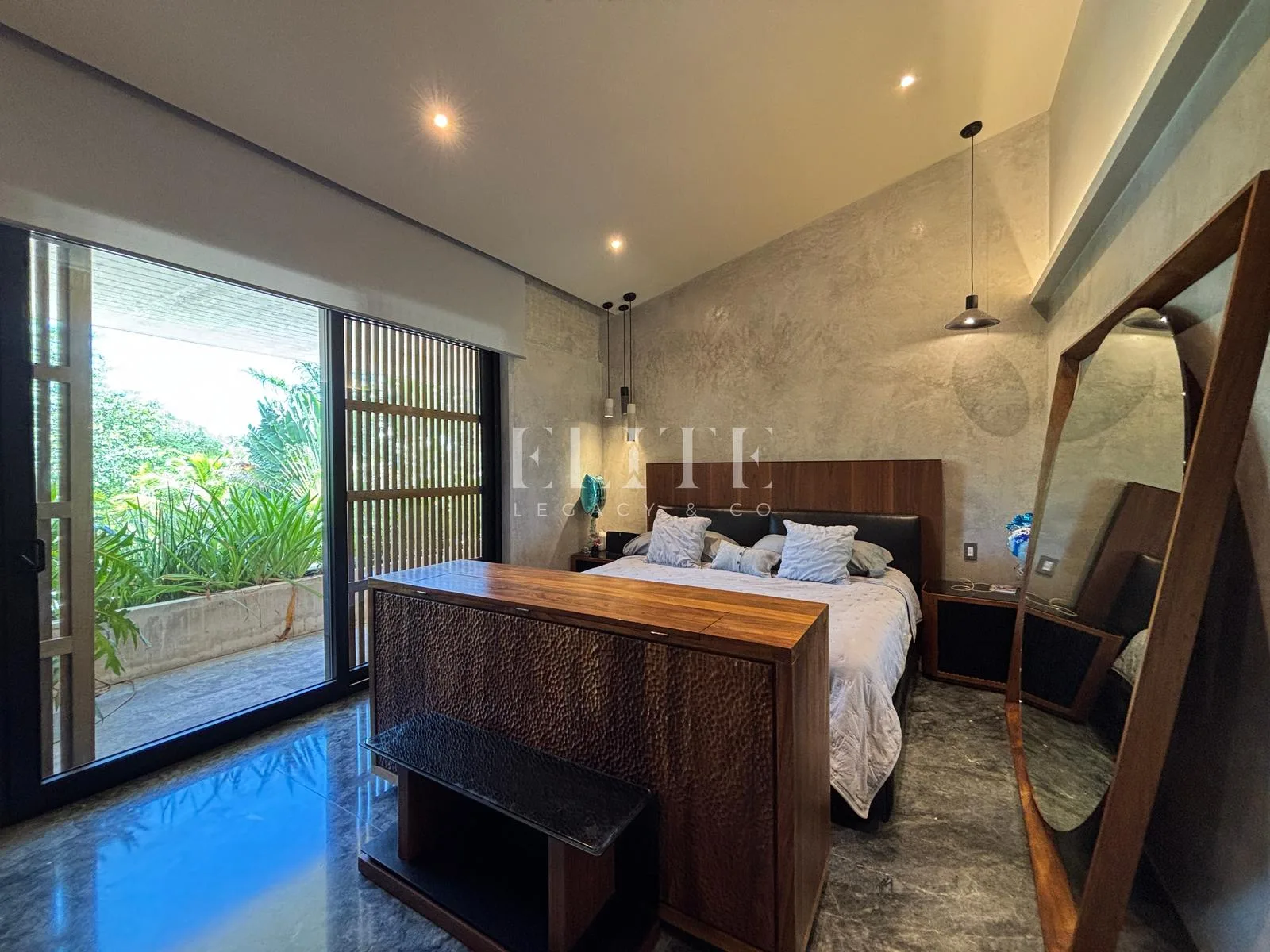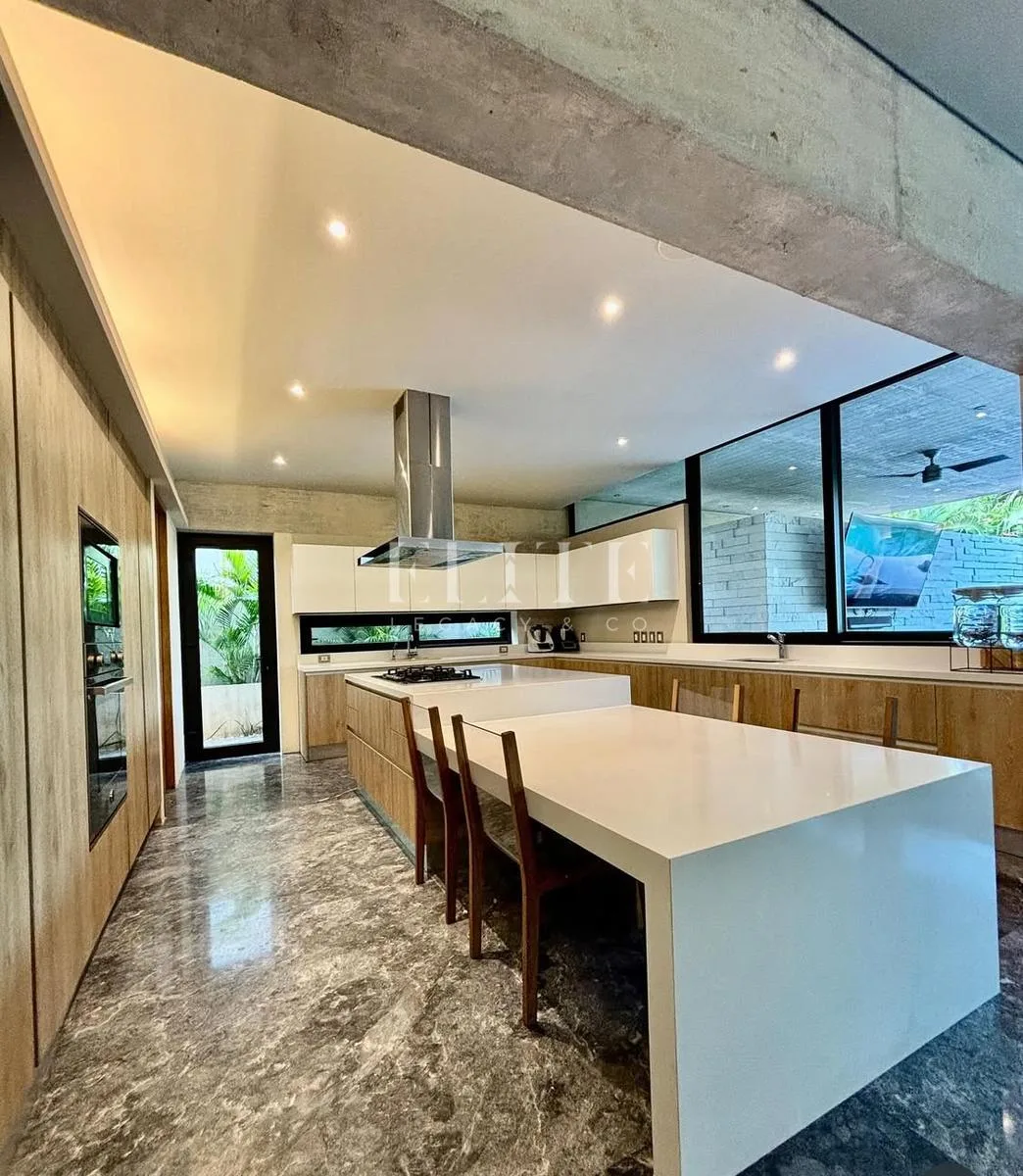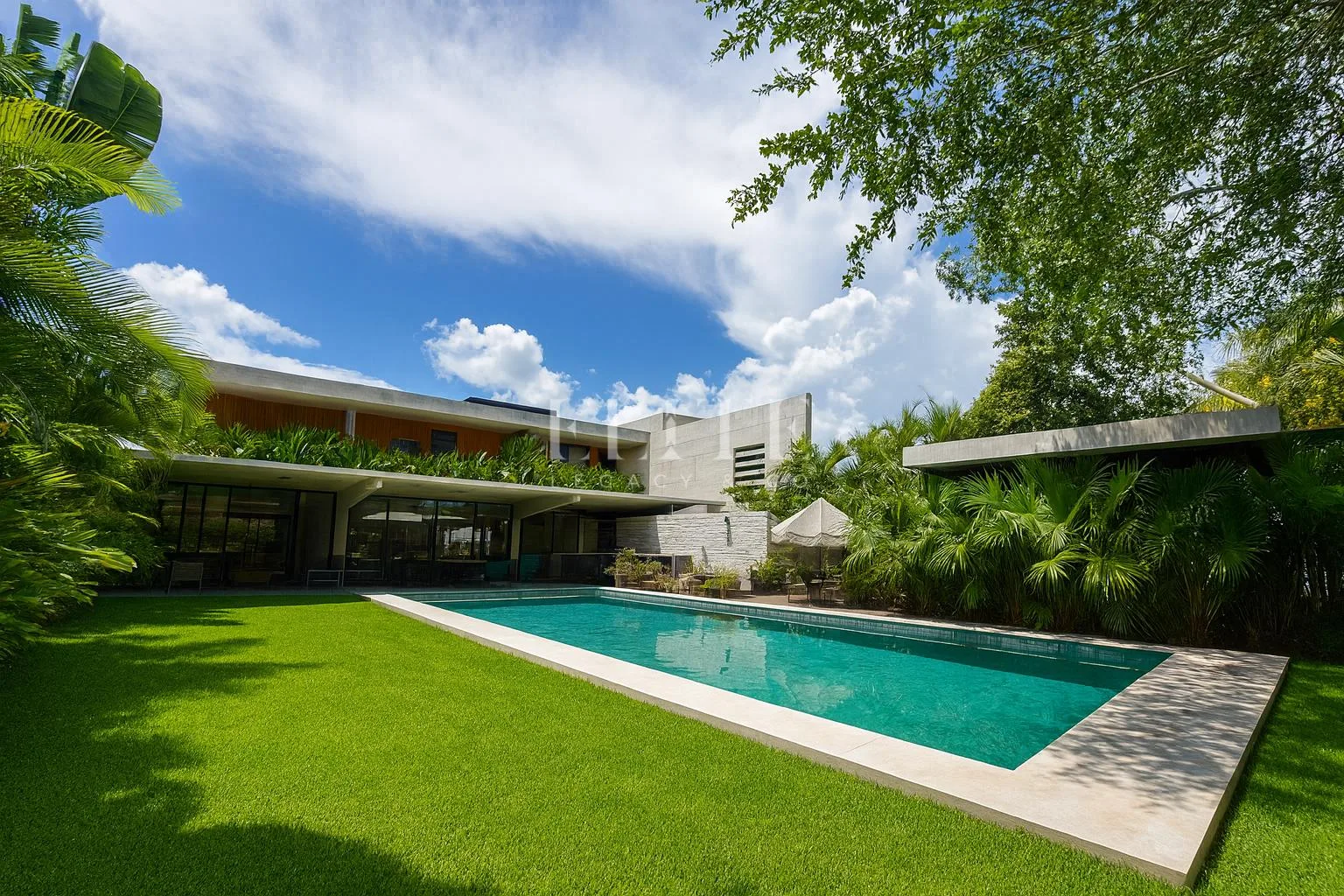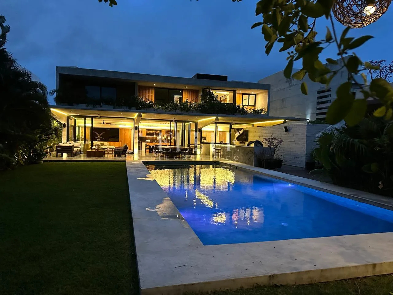 This residence is situated in Lagos del Sol, a community featuring over 40 hectares of freshwater lakes and extensive amenities. The property occupies a 1, 050 m² lot and was designed by architect Juan Carral. It incorporates avant-garde architecture with spacious layouts, high ceilings, and large windows that open to private gardens and social areas. The design follows a minimalist and elegant style, using high-quality materials and clean lines to blend interior and exterior spaces.