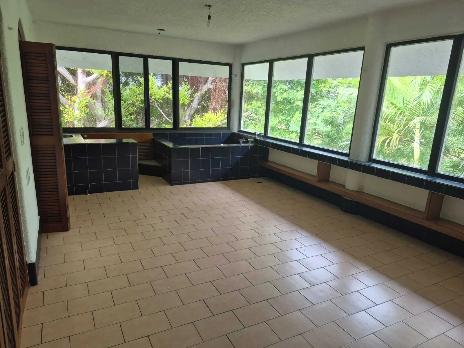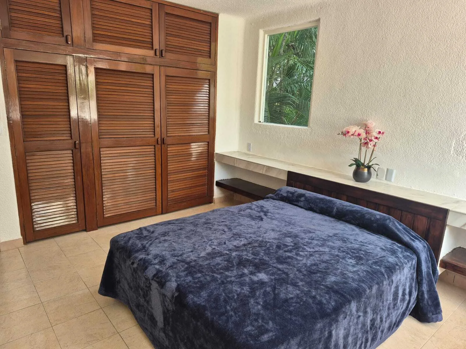 The property features four spacious bedrooms. The primary bedroom includes a large walk-in closet and a jacuzzi. A separate service room is also available.