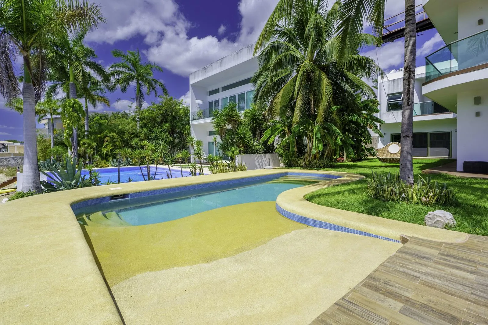 This lakefront property is situated in the Lagos del Sol community of Cancún.