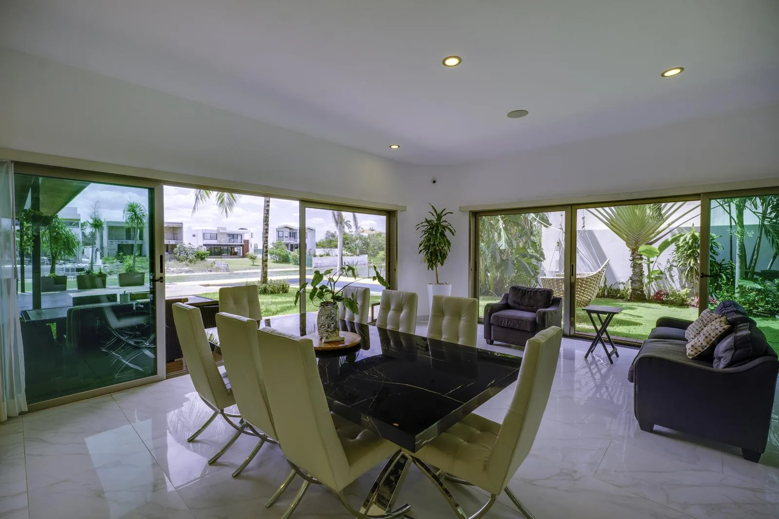 The property offers controlled access, spectacular views, and high-end finishes. It is located facing a freshwater lake within the Lagos del Sol community.