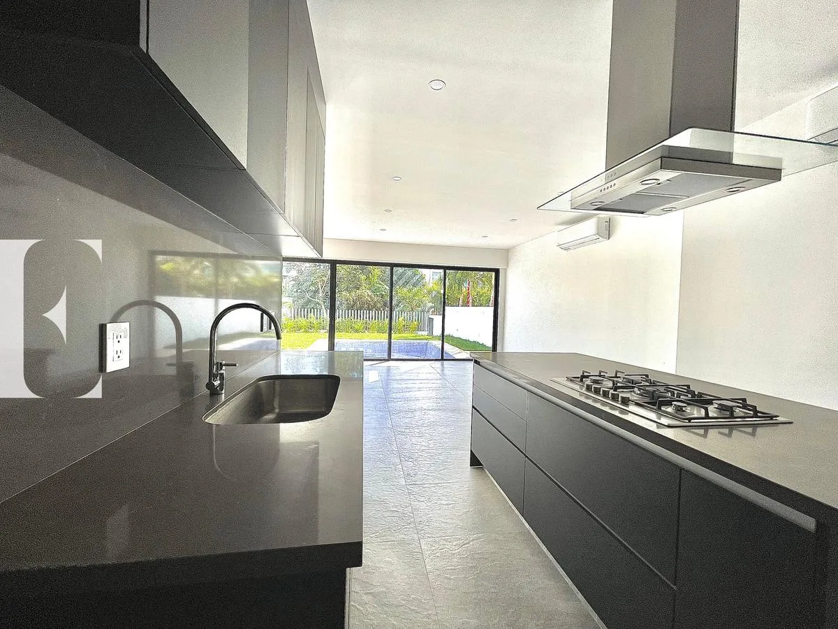 The property is equipped with a 5, 000-liter cistern with a constant pressure system. The kitchen includes a gas stove, gas oven, and range hood. There is a gas water heater and provisions for a washer and dryer. The bathrooms feature tempered glass cabinetry, and the home is equipped with inverter-type mini-split air conditioning units.