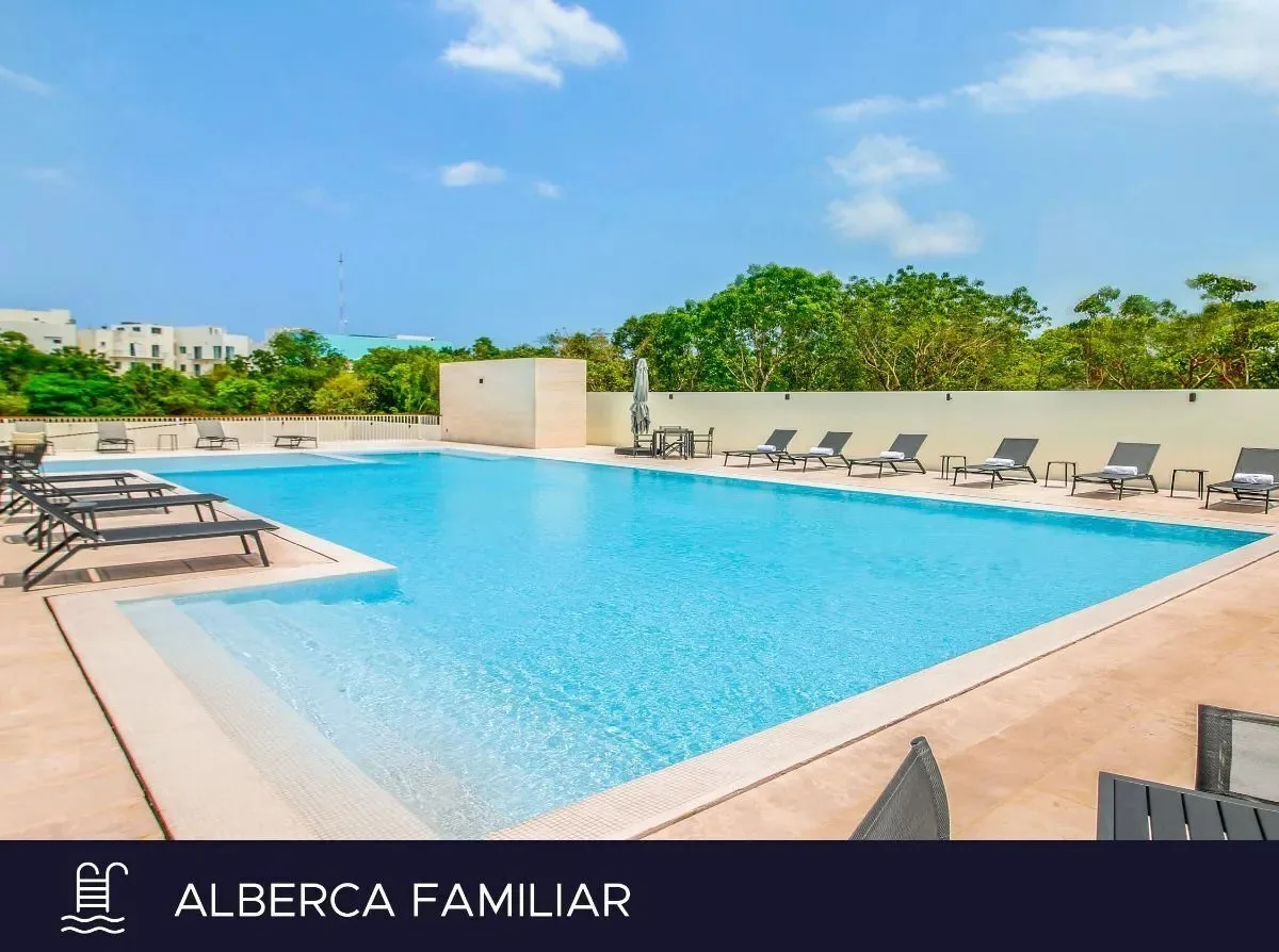 The location provides excellent connectivity. It is approximately five minutes from the new bridge over the Laguna Nichupté, which leads to the Hotel Zone in about seven minutes. The Hotel Zone itself is roughly seven minutes away, while Playa Langosta and Cancun International Airport are each approximately twelve minutes away.