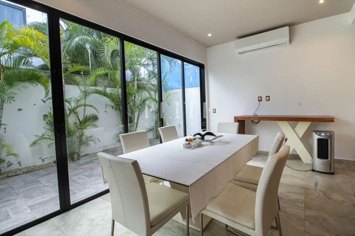 This modern house is located in the Aqua Residencial development in southern Cancun. The area provides convenient access to schools, universities, supermarkets, restaurants, and various stores.