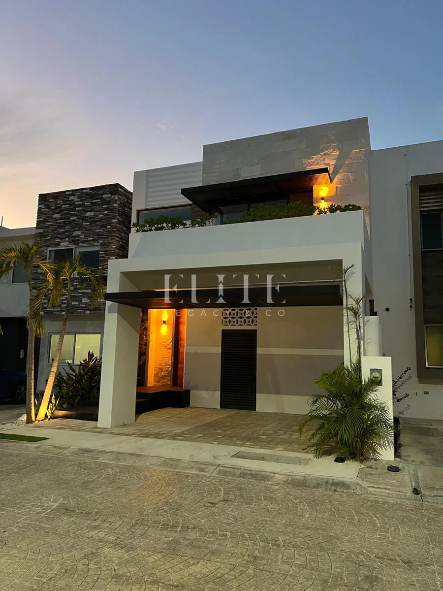 Located in the Aqua Residencial community in south Cancún, this modern house is situated in a growing area near schools, universities, supermarkets, restaurants, and stores.