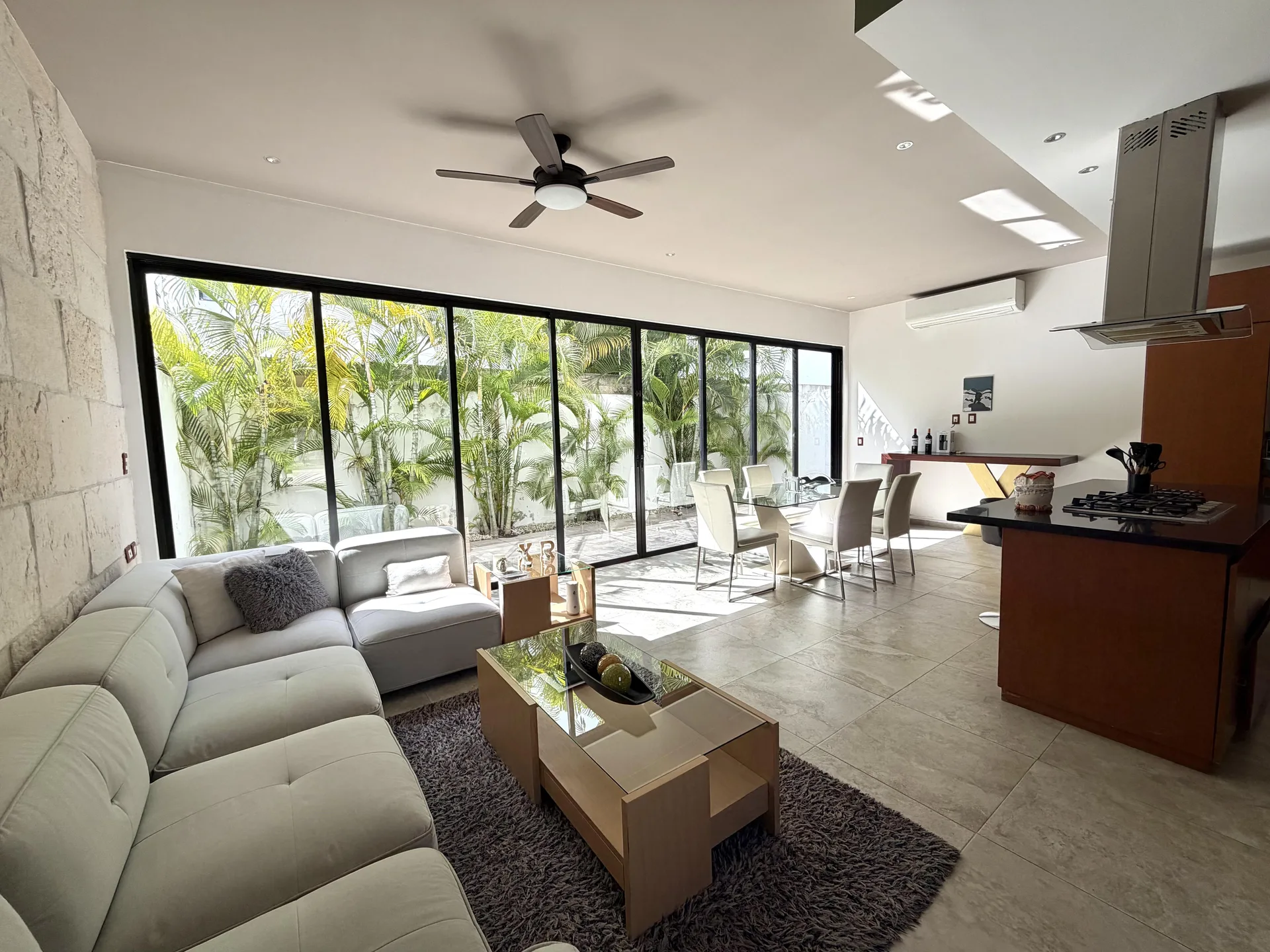 This modern residence, with 249. 5 square meters of construction, is located within Aqua Residencial, a well-planned residential development in Cancun.