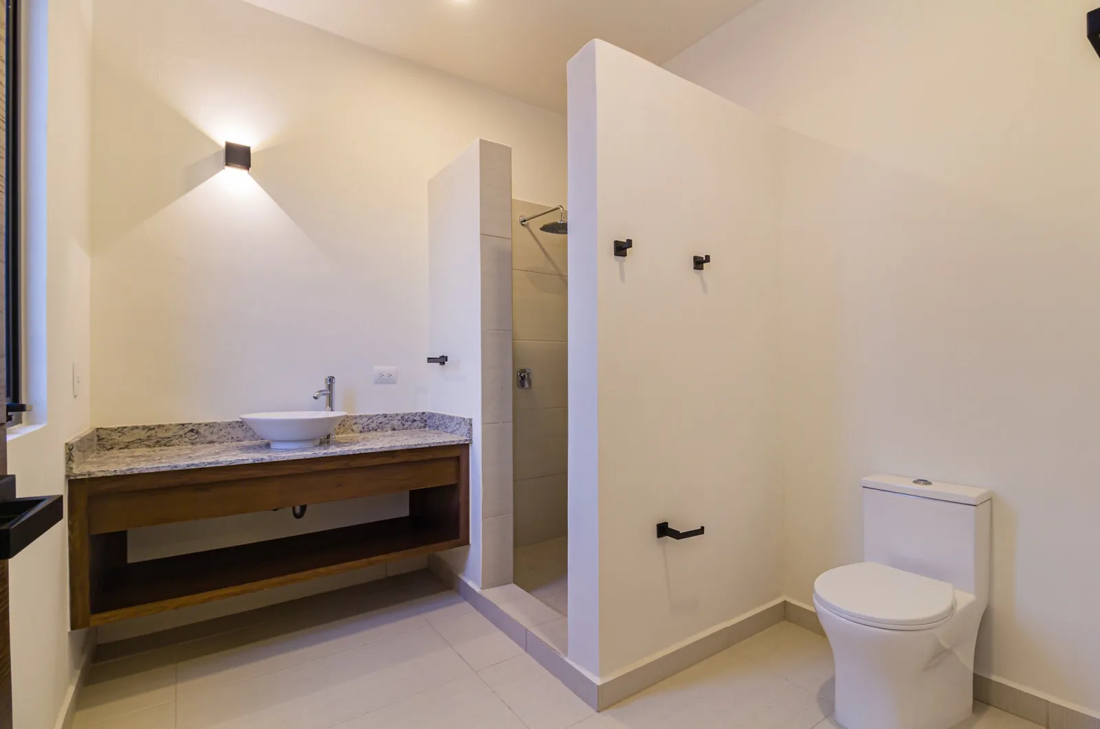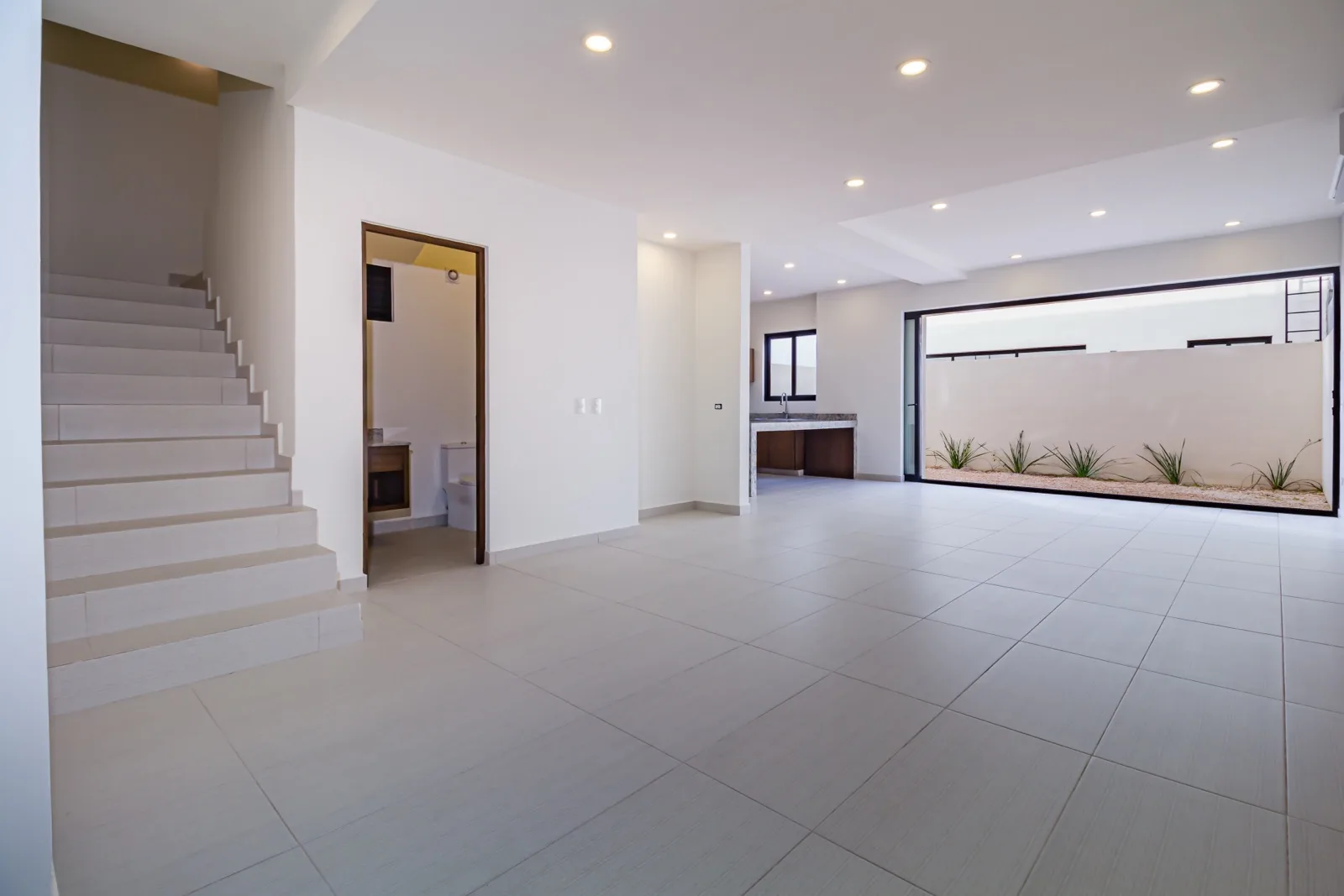 This brand new house offers 219 square meters of living space. The property features three bedrooms, each with parota wood closets.