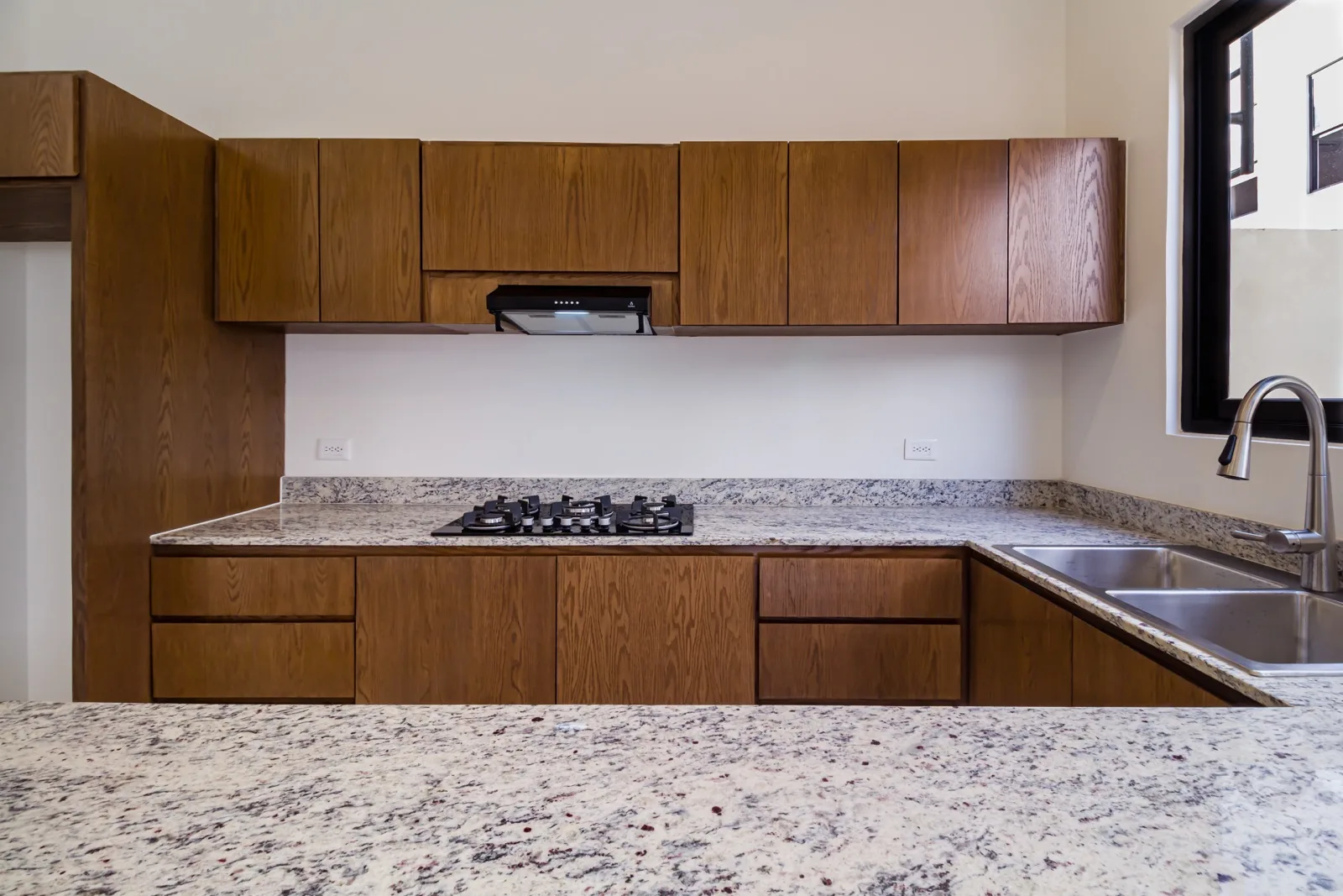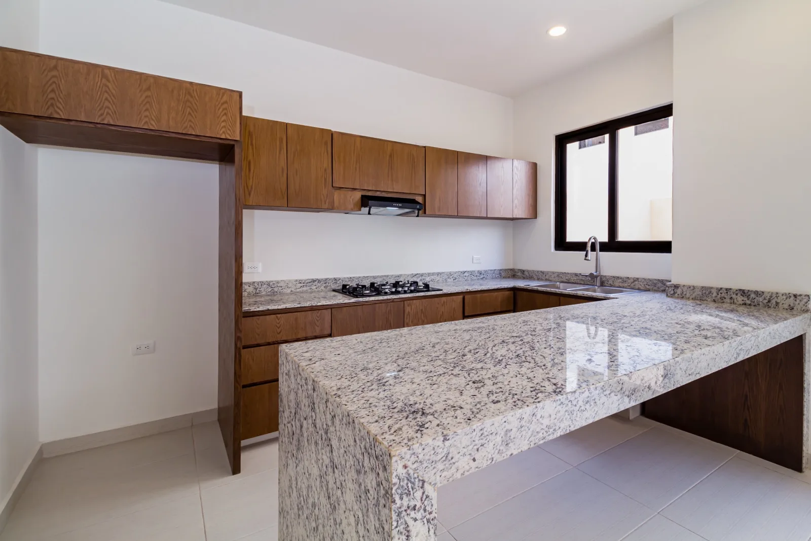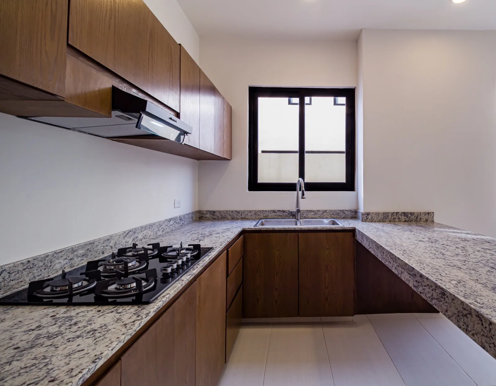 The kitchen is finished with granite and parota wood. There are two covered parking spaces.