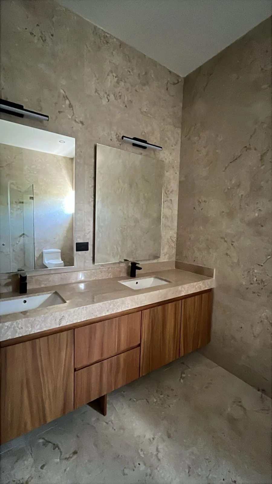 The entire house is equipped with air conditioning and ceiling fans. Bathroom doors feature tempered glass, while the kitchen has granite countertops and the bathrooms boast marble vanities. The property incorporates first-quality aluminum elements and parota wood carpentry throughout.
