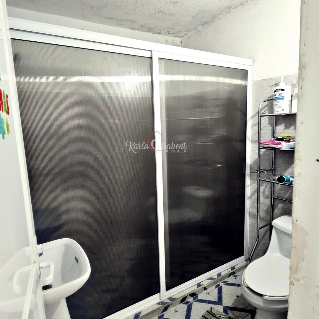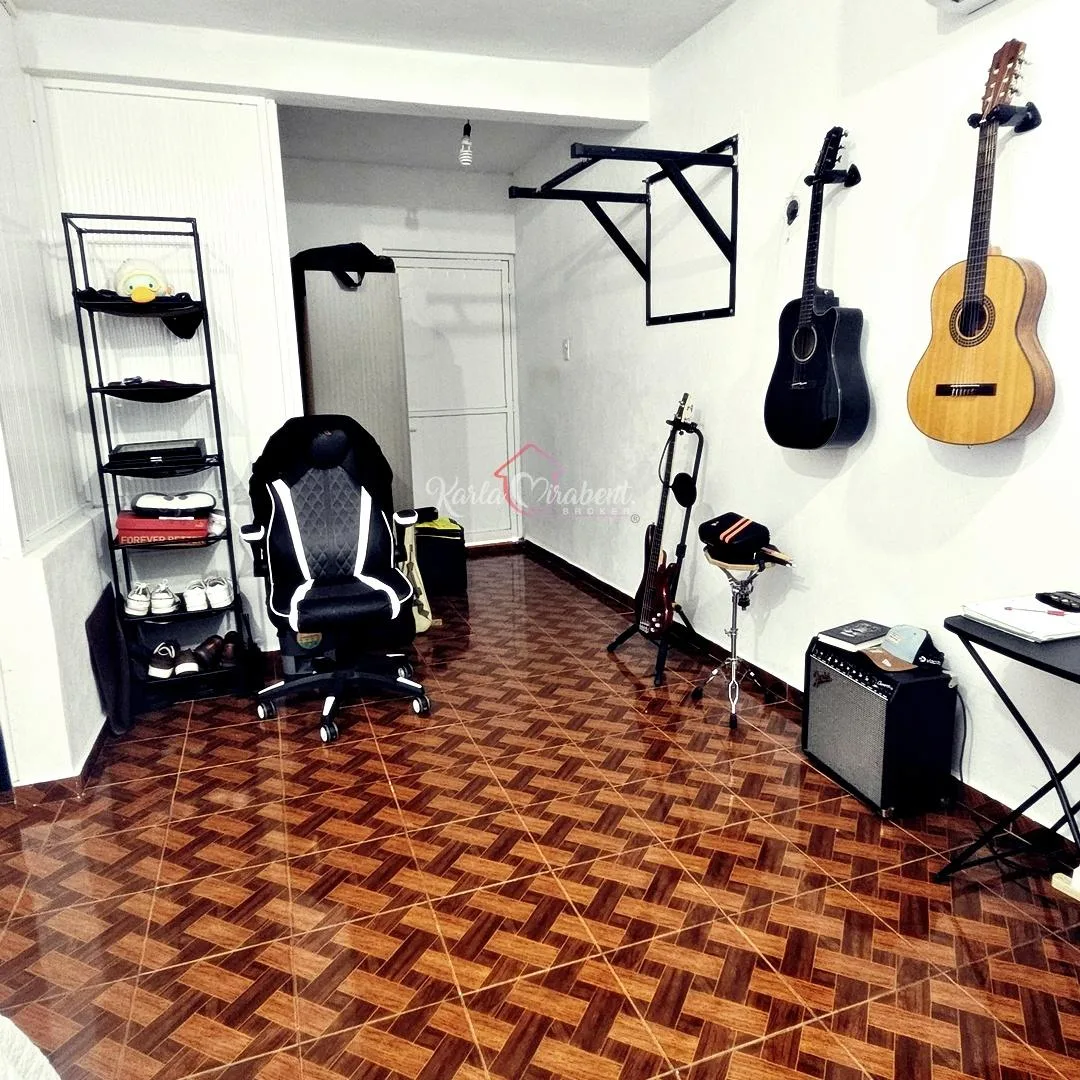 Parking is provided by two uncovered spaces. The construction is solid, featuring block walls, reinforced concrete slabs, and finishes of ceramic tile and porcelain. Extra features include an access gate, aluminum windows with protectors, and a backyard.