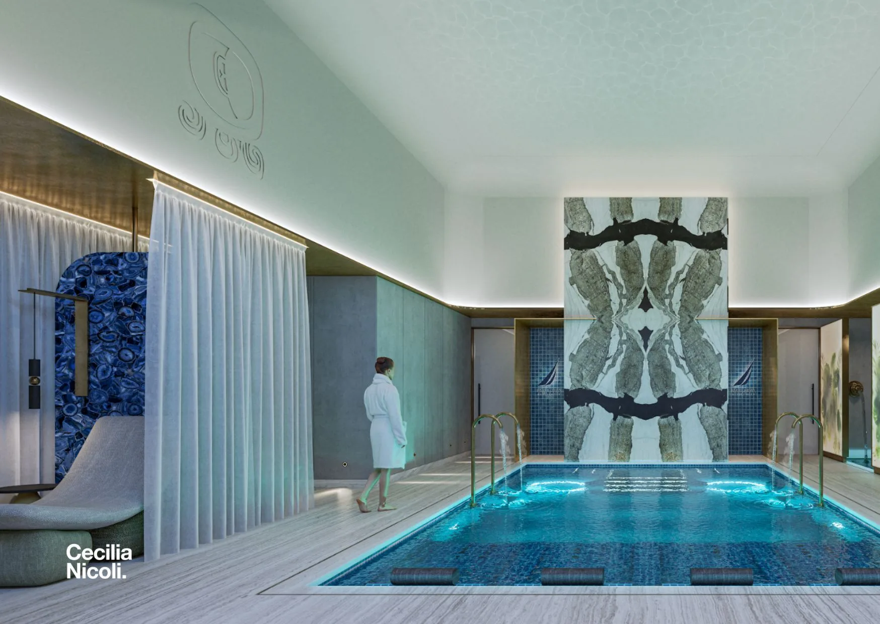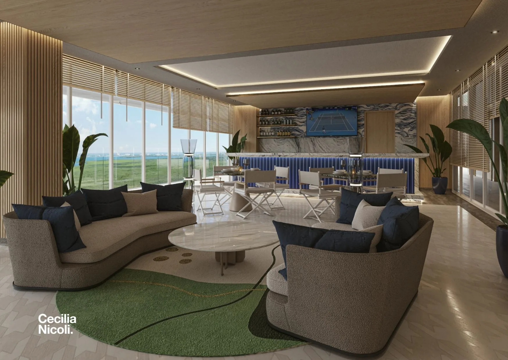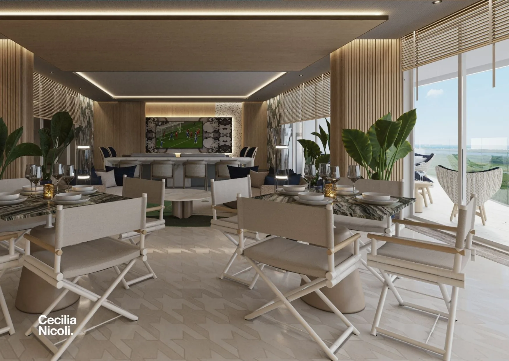 Residents have access to over 50 exclusive amenities and services. These include a Beach Club at Isla Blanca, family and adult swimming pools, a spa, gym, and sports courts. There is a playroom, video game area, and a Sports Bar. Additional facilities include coworking spaces, meeting rooms, a cinema, a Speakeasy, and a Music Hall. The property features a gourmet restaurant, a wine cellar, and a rooftop with 360-degree views of the lagoon, mangroves, sea, Hotel Zone, and Isla Mujeres. Laundry facilities, 24/7 security, and complimentary transportation to the airport and the Beach Club are also provided.