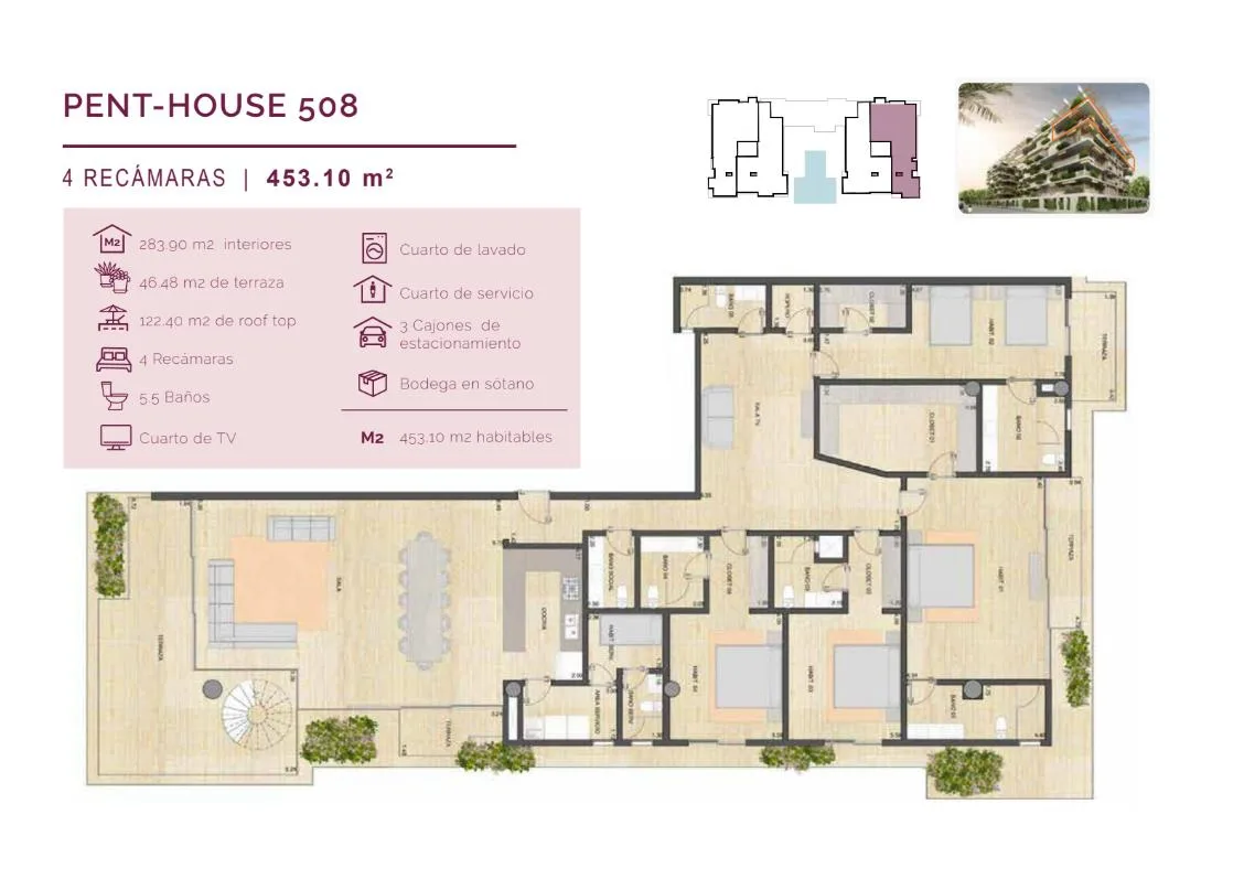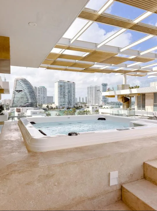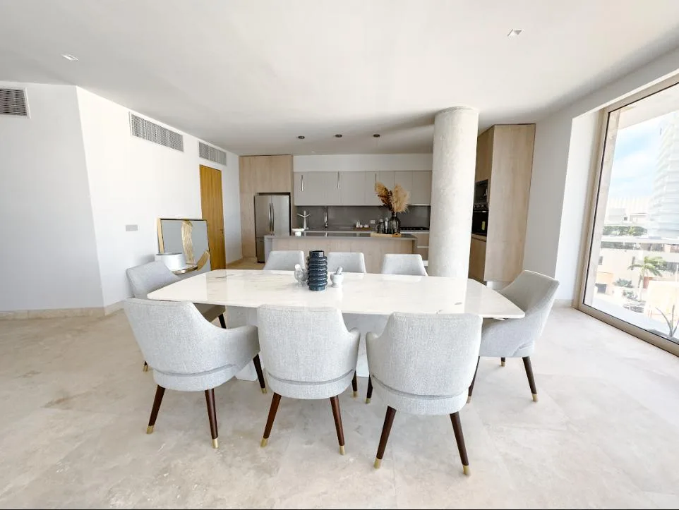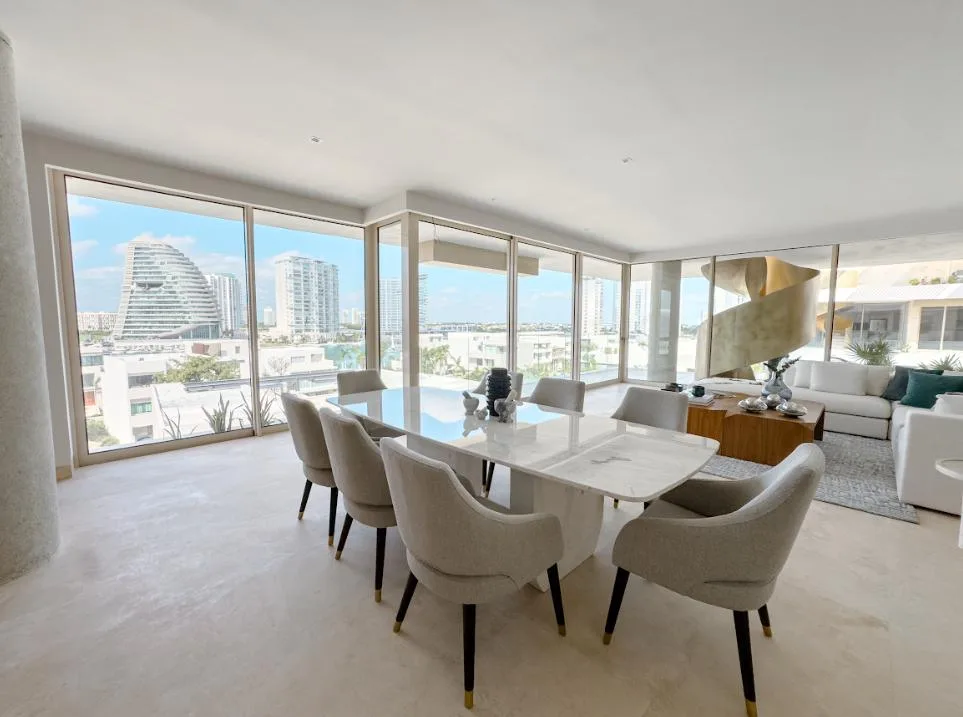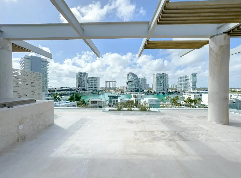 This 440-square-meter luxury penthouse is situated in the exclusive Puerto Cancún community. The residence is designed with premium finishes and a sophisticated layout.