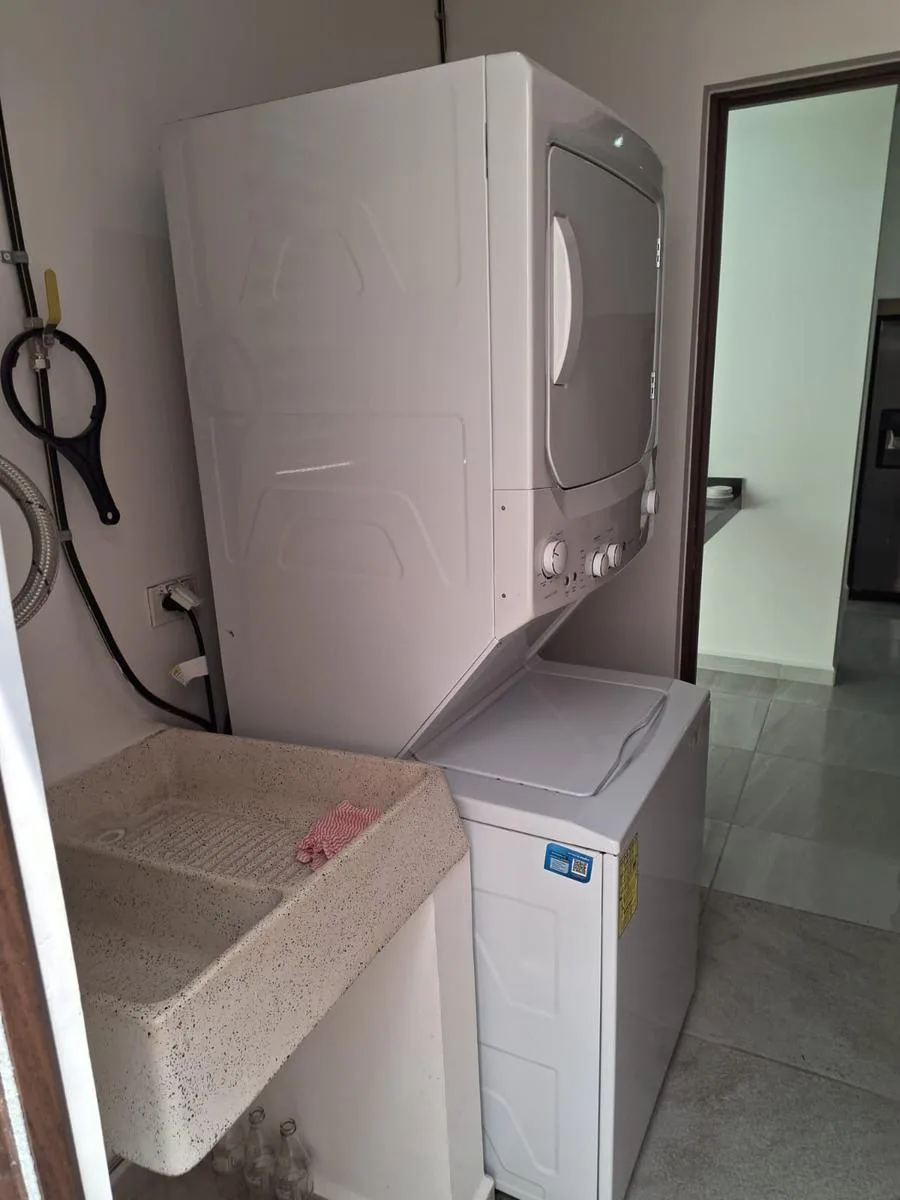 The residence integrates style and functionality, with independent inverter air conditioning units, wireless fans, blackout and translucent blinds, and tempered glass in the bathrooms. Mirrors in the bathrooms and the primary bedroom's walk-in closet are included.