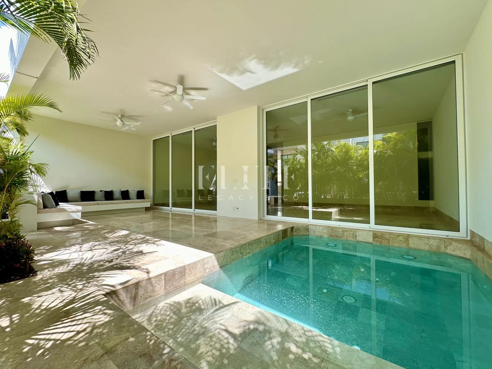 The community has controlled access and 24-hour security. Navigable canals connect to the Caribbean Sea, allowing for yacht access from a private dock. Direct access is available to a shopping center with high-end stores, gourmet restaurants, and a cinema.