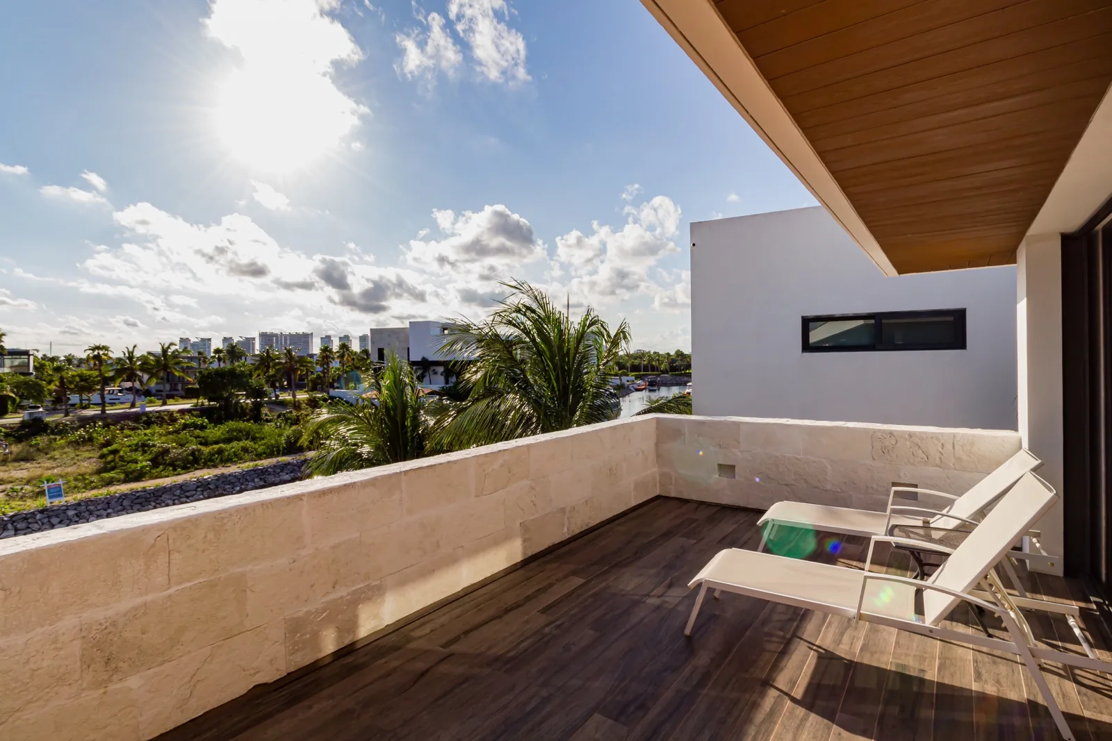 The villa is located in Los Canales, Puerto Cancún, in the Mexican Caribbean. It features architectural design with premium finishes and construction focused on comfort and security.