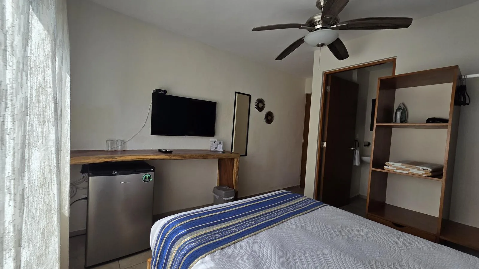 The hotel features eight rooms, each with a private bathroom and air conditioning. All rooms are equipped with curtains, a television, a minibar, a coffee maker, and a hair dryer. Some rooms include a balcony and terrace.