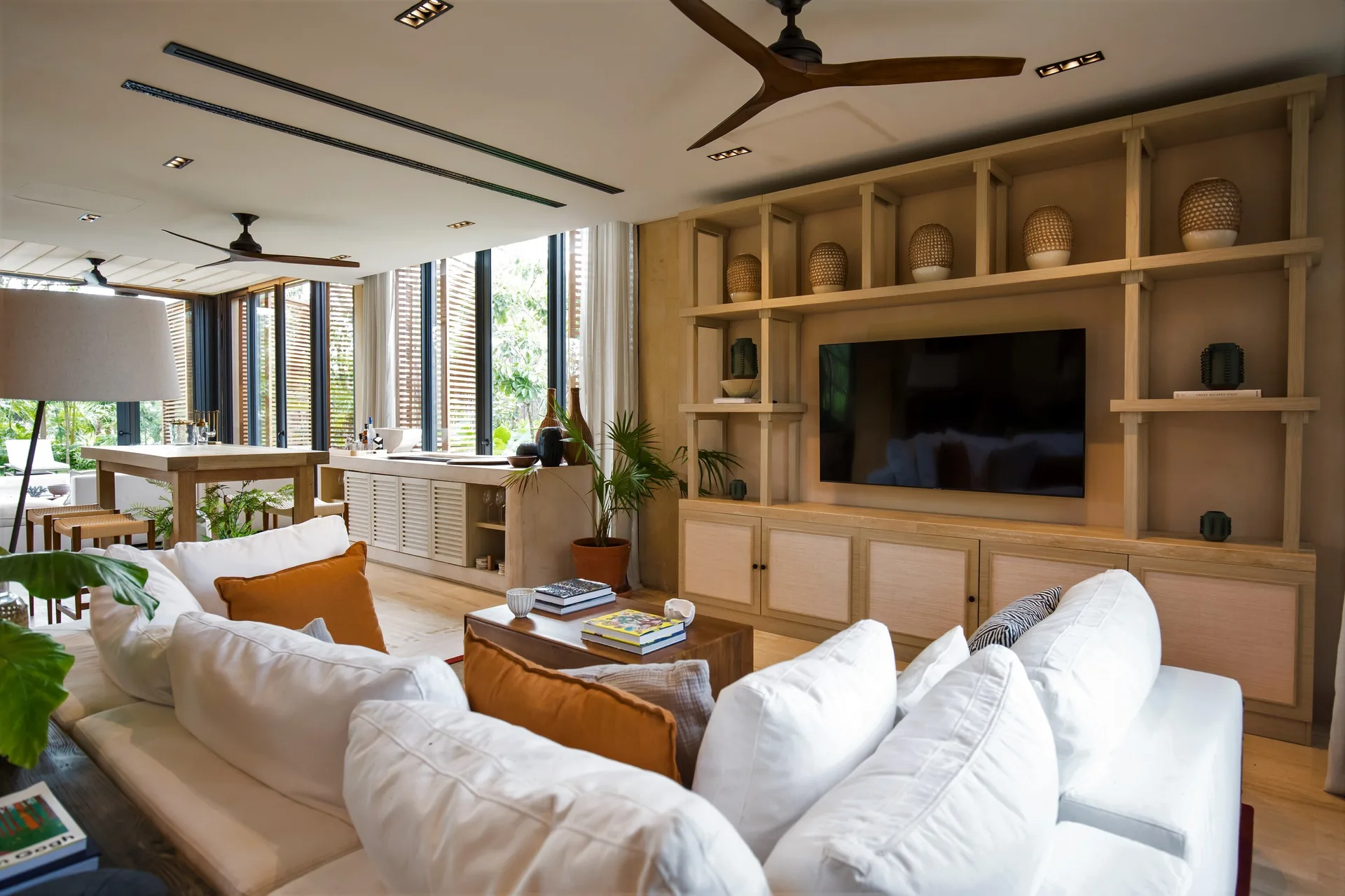 The architecture features expansive, open spaces with large windows that allow abundant natural light and fresh air. The layout creates a seamless harmony between indoor and outdoor luxury living.