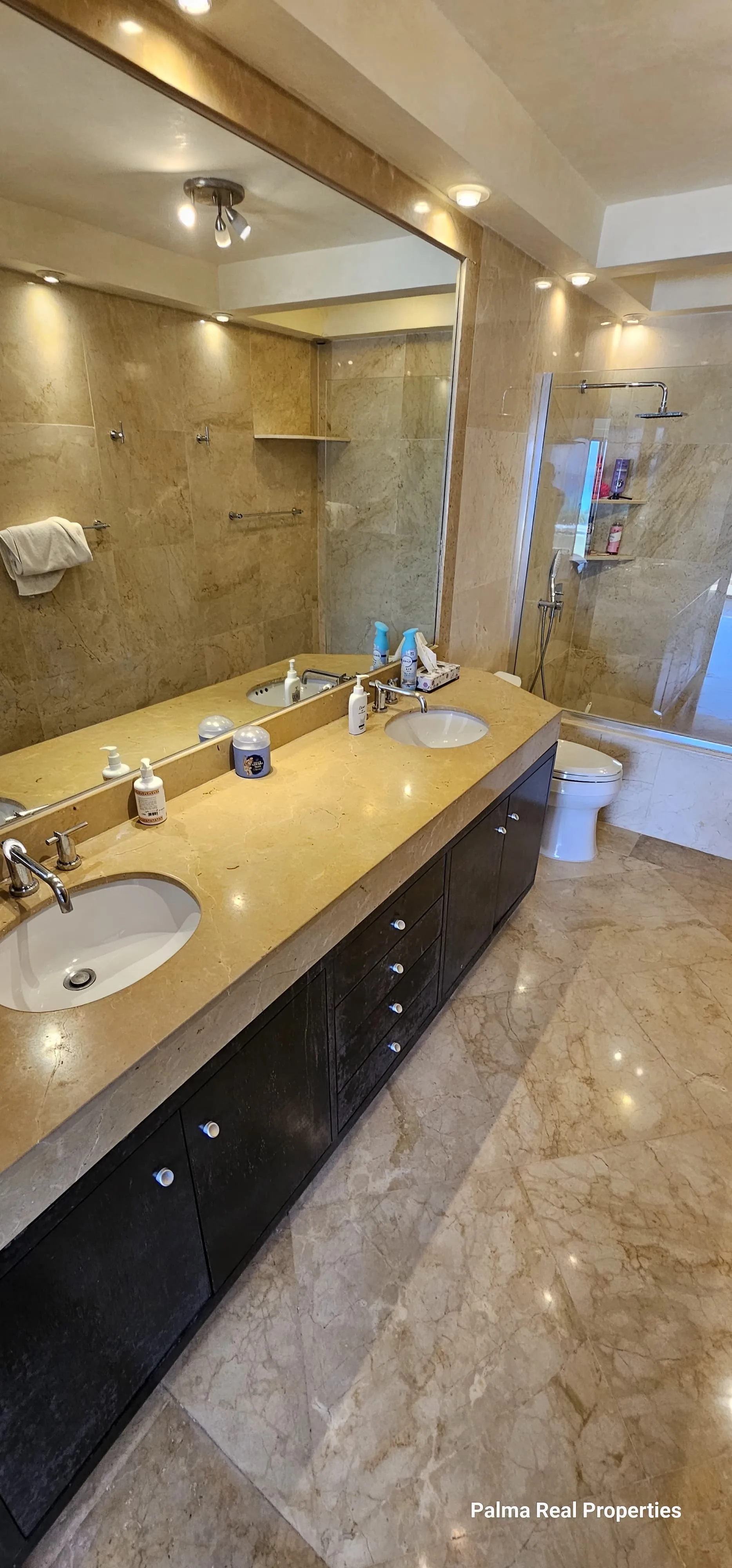 The entire floor of the villa is covered in Italian Carrara marble, introducing a touch of elegance to every corner. The ensuite bathroom in the primary bedroom is fully clad in marble, creating a spa-like atmosphere within the home. All bedrooms have independent air conditioning units, ensuring maximum comfort for every family member or guest.