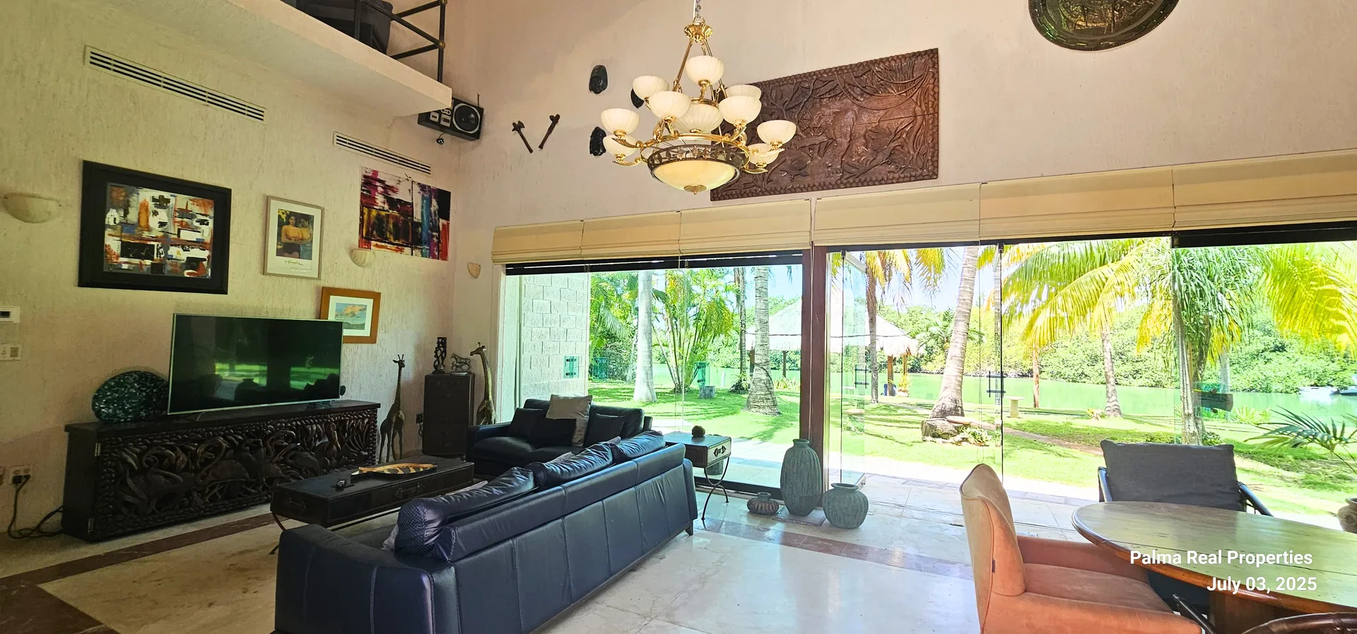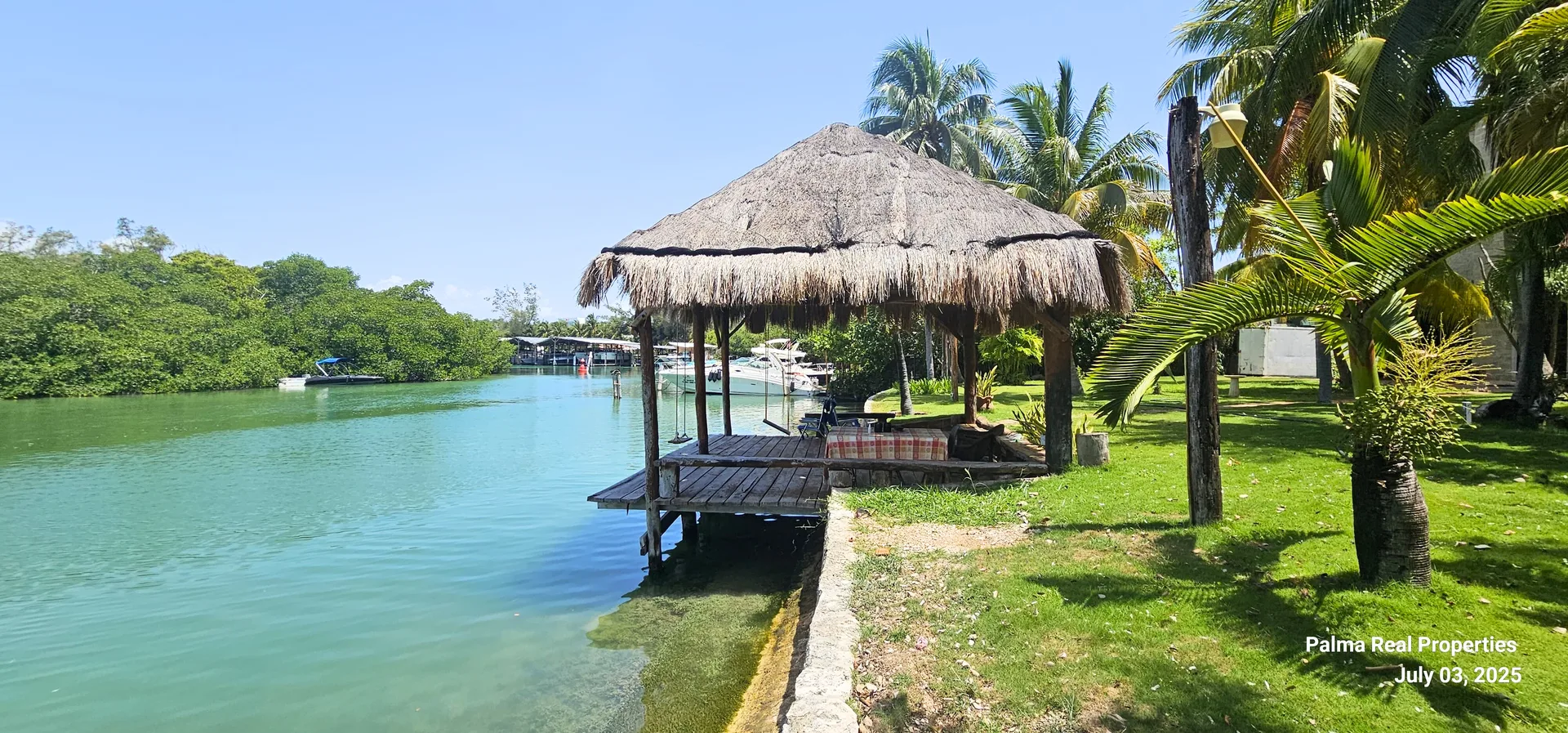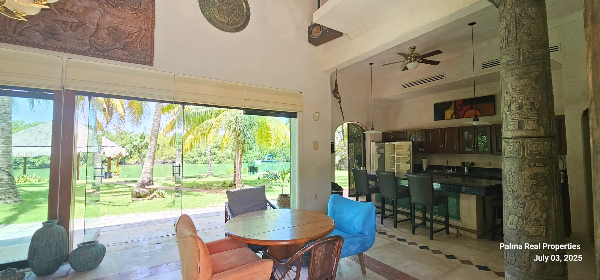 The outdoor areas feature a tropical garden with a private palapa facing the lagoon. There is an option to install a private dock or pier, subject to federal zone regulations. The social areas are bright, fresh, and full of character. The property offers an open view of the Nichupté Lagoon surrounded by natural vegetation, ideal for enjoying sunsets or accessing the water directly.