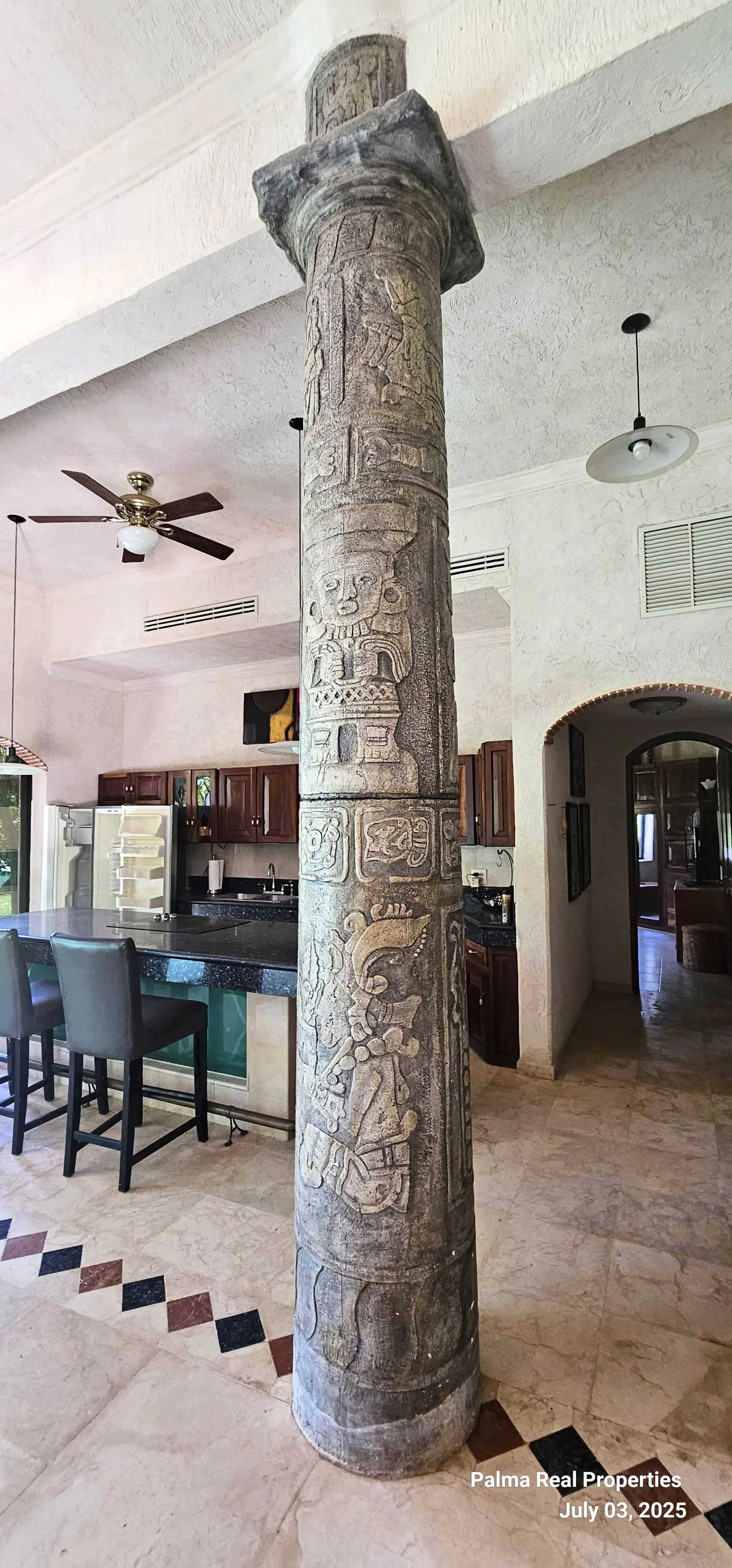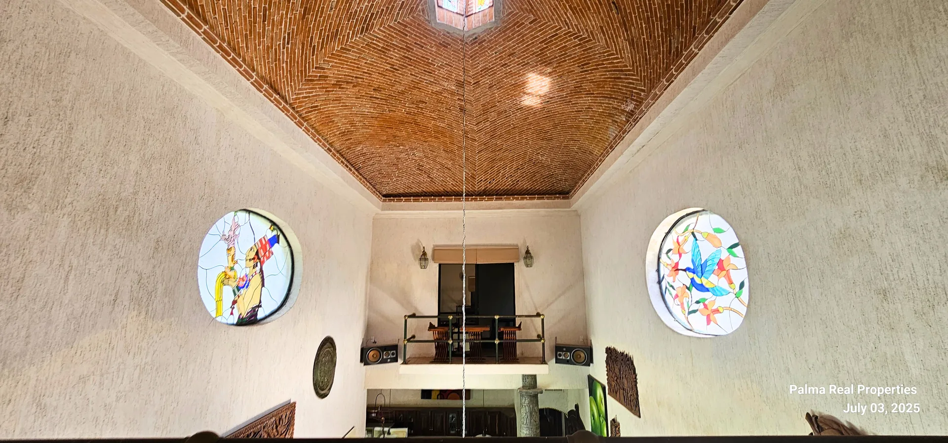 The architecture is distinguished by its solid structure, tile roofs, and large windows. The interior features double-height ceilings, columns hand-carved from volcanic stone with pre-Hispanic motifs, Catalan vaults, stained glass, noble woods, and details that reflect a deep Mexican inspiration. Each space was designed with attention to detail, offering authentic luxury and modern functionality.