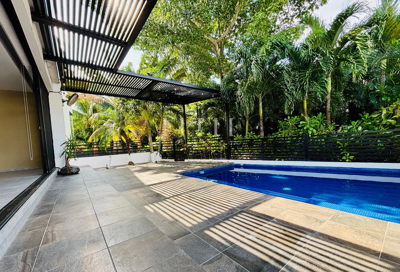 The property is equipped with inverter air conditioning on the ground floor and in all bedrooms, along with ceiling fans, mosquito screens on all windows, and blinds in all bedrooms. The covered terrace has space for a living area. The home also features a water softener and a cistern. The construction year of the house is 2022.