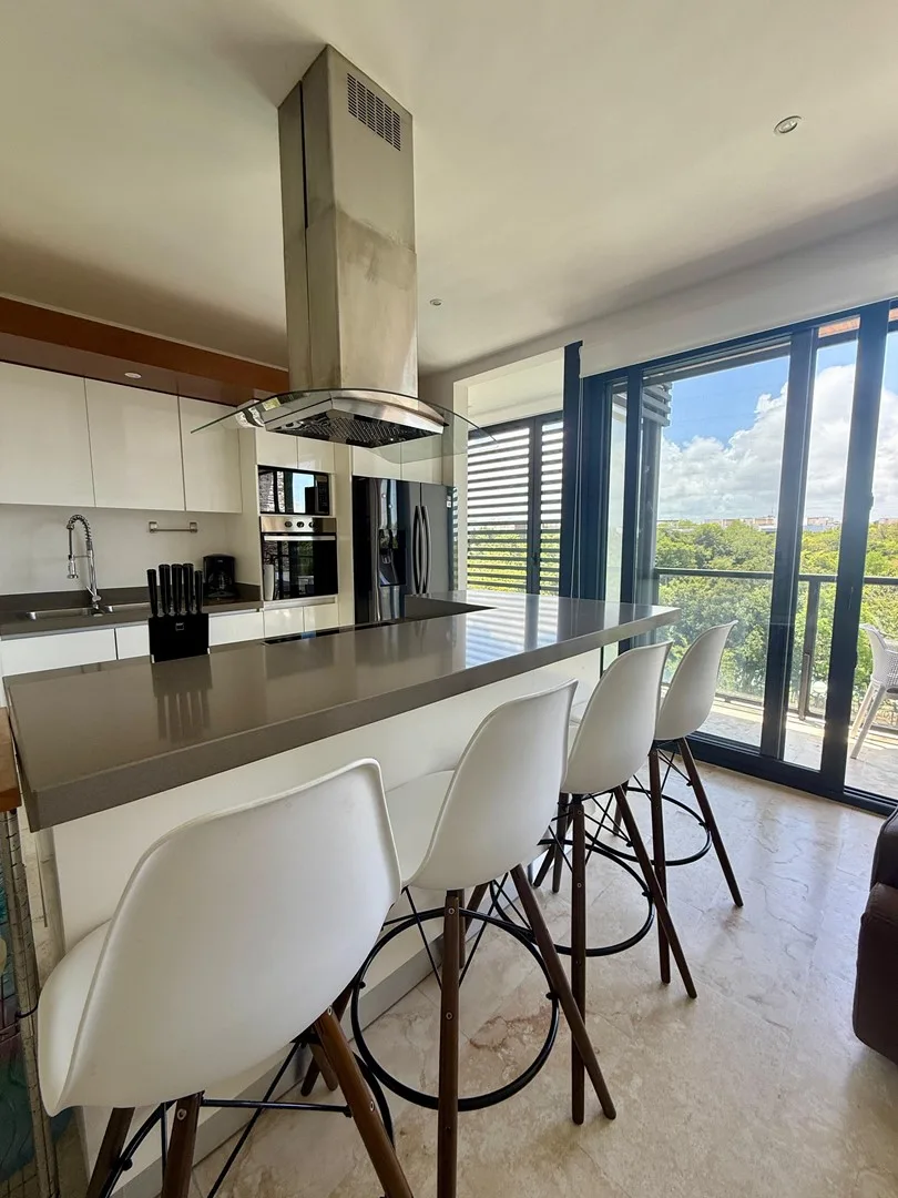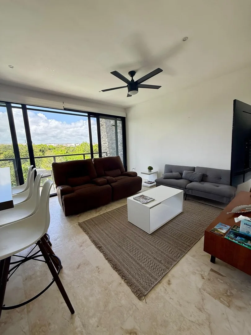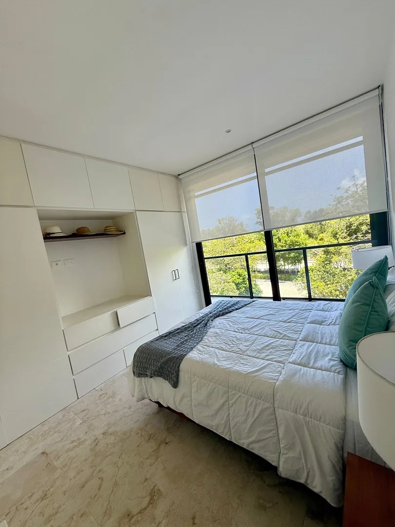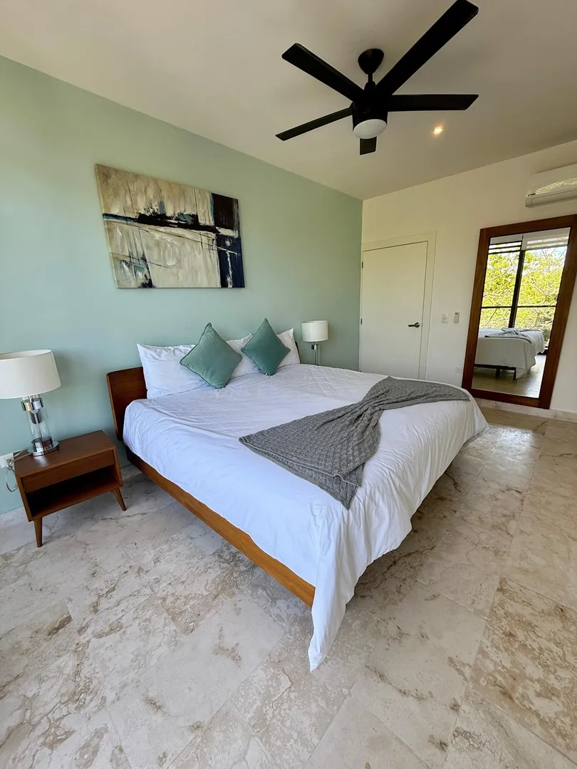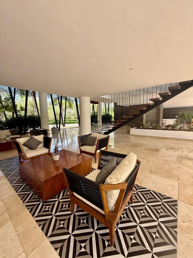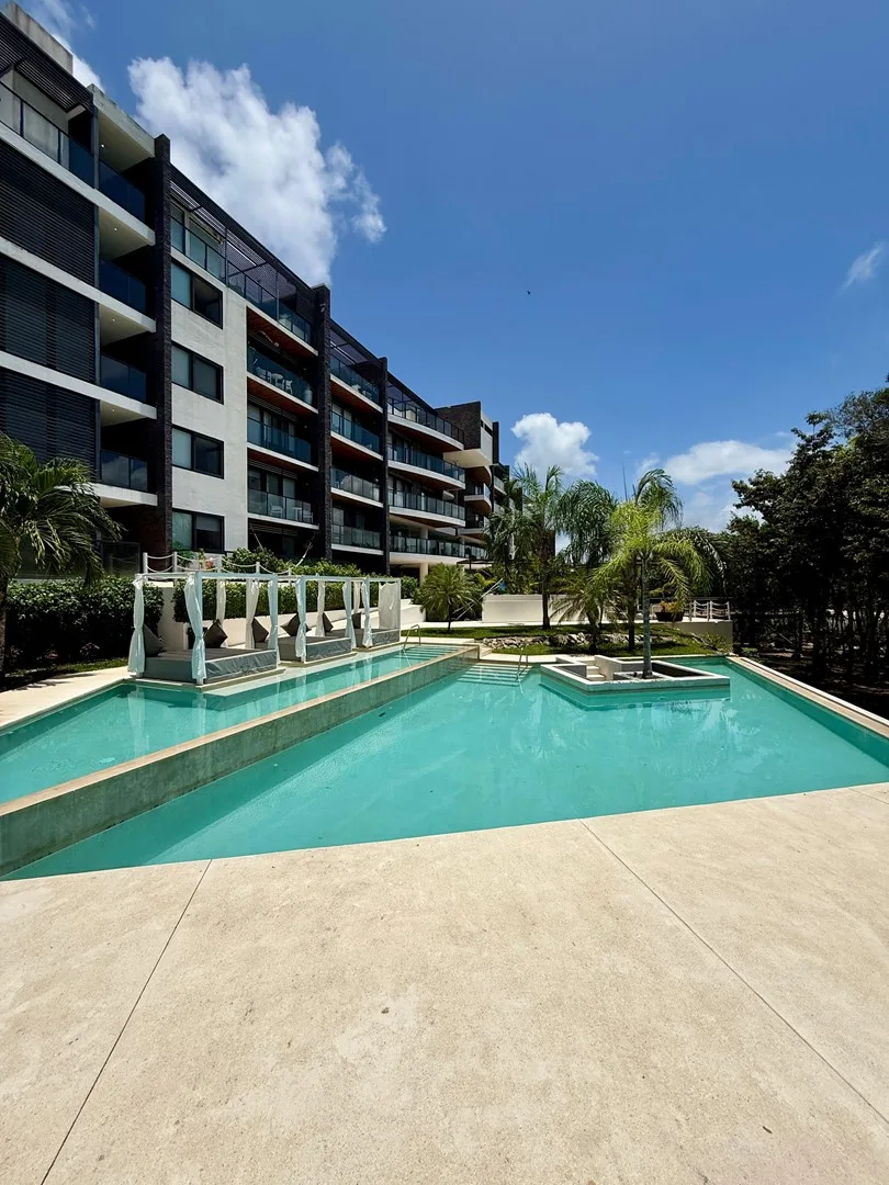 This 3-bedroom residence offers a flexible layout and is situated within a gated community. The unit provides uninterrupted views of the jungle, a lake, and a PGA-certified golf course, as well as ocean panoramas from the shared rooftop.