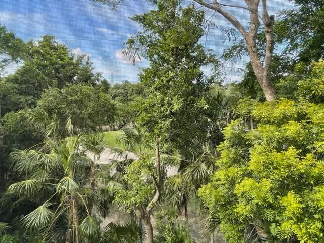 It features premium improvements including hurricane-proof plexiglass over the terrace and a fully screened outdoor space. This creates a seamless indoor-outdoor area with a view of the PGA golf course. The unit is fully furnished with quality furniture and is in mint, move-in ready condition.