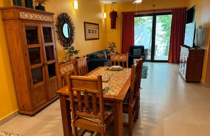 Located within the luxurious, gated Tao Residencial community in Akumal, this spacious condo offers a modern living experience on the Riviera Maya. This ground-floor unit features two bedrooms and two full bathrooms. Each bedroom includes a spacious and practical closet.