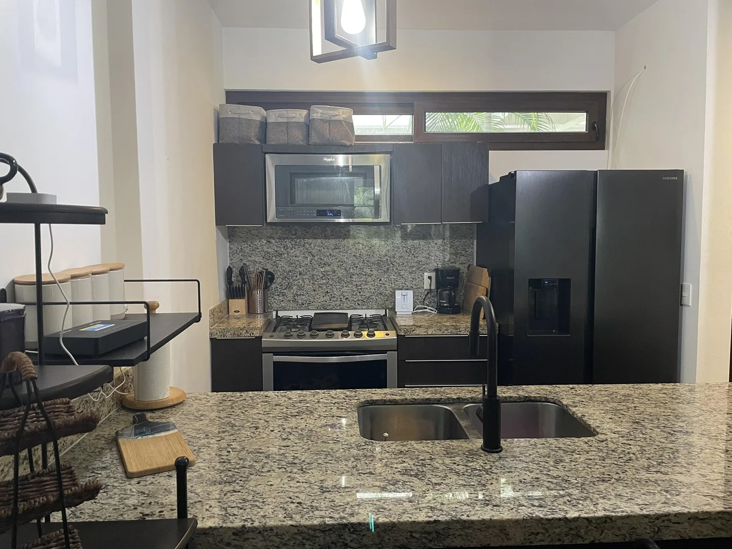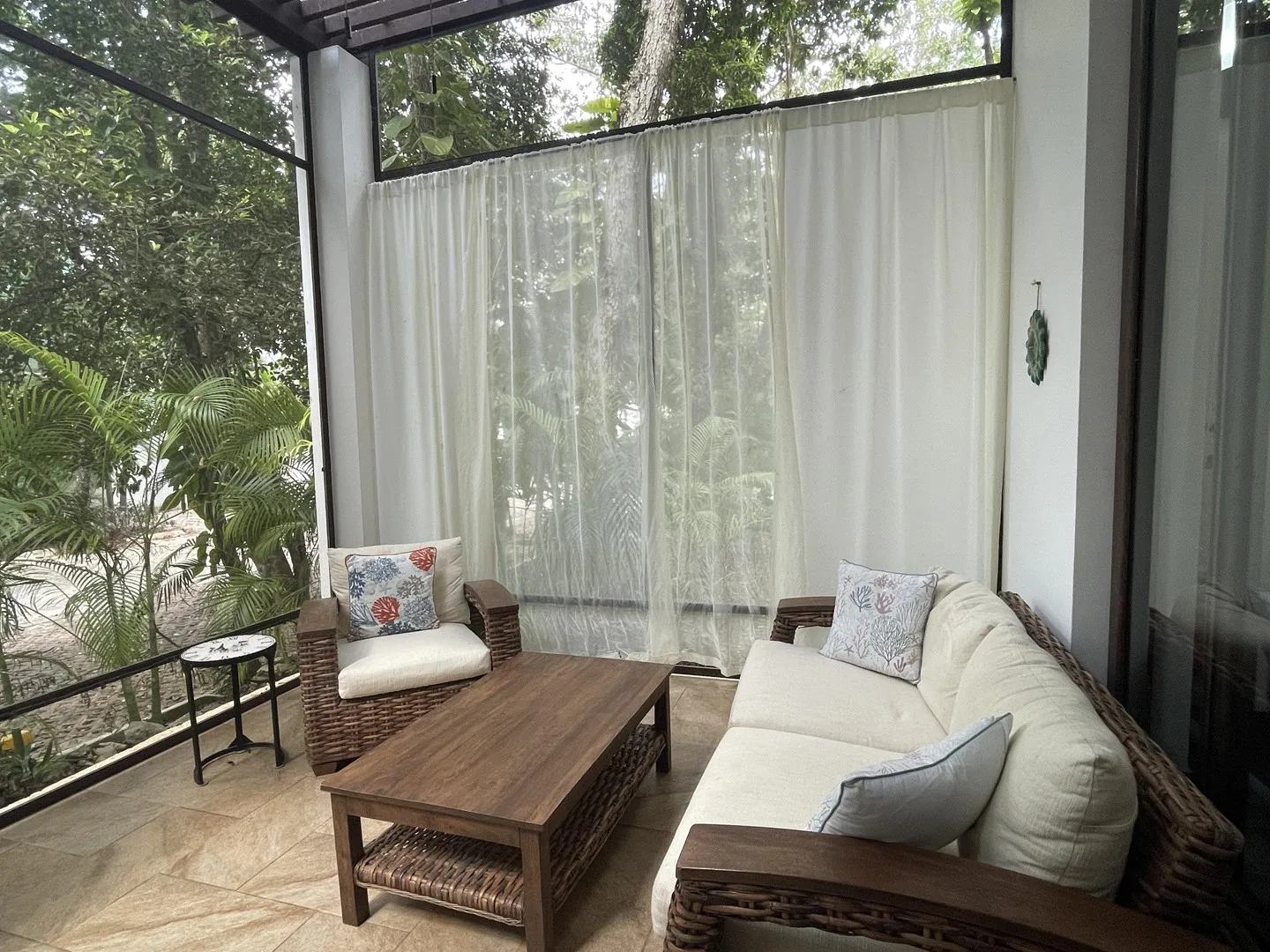 The living space extends to a covered terrace that opens to lush greenery, creating an ideal area for relaxation, dining, or enjoying morning coffee surrounded by nature. The property has never been rented and is in pristine condition throughout.