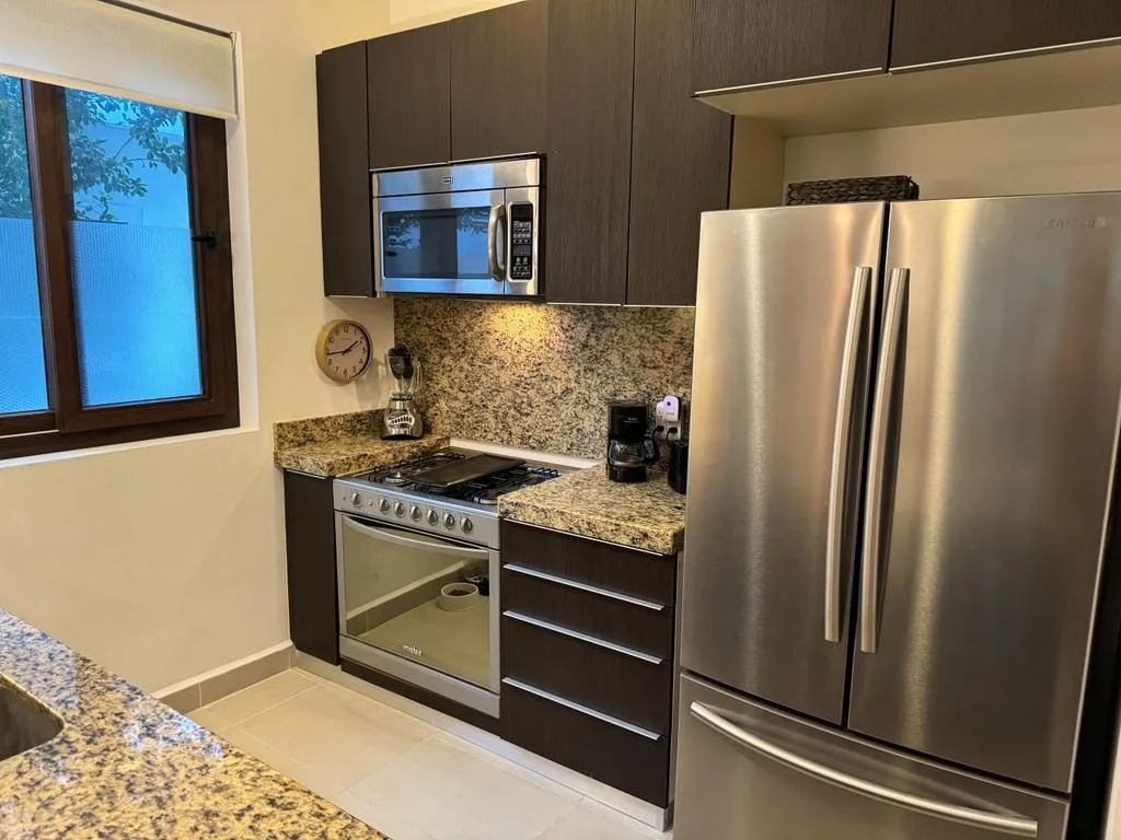The community provides access to two infinity pools located just a few steps away. The broader grounds feature a wellness center with spa services, a fully equipped gym, a yoga studio and conference center, a Temazcal, and a bistro.