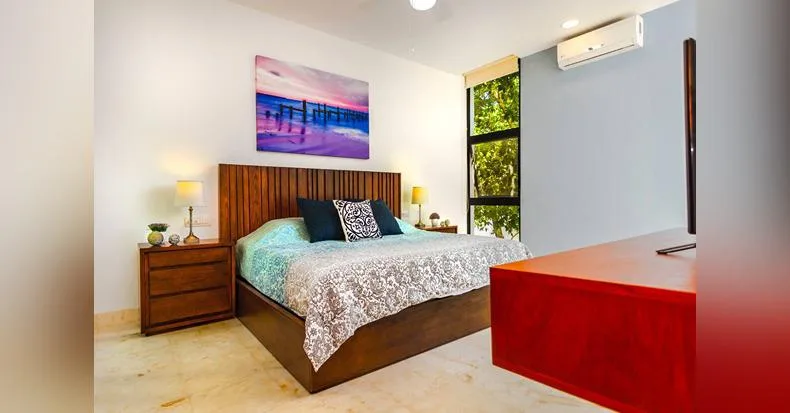 Welcome to this stylish retreat in the heart of the ANAH Tulum complex at Tulum Country Club. This charming one-bedroom, middle-floor corner unit offers a blend of comfort, elegance, and tranquility. The property is tastefully decorated with beautiful artwork and furnished with high-quality pieces.