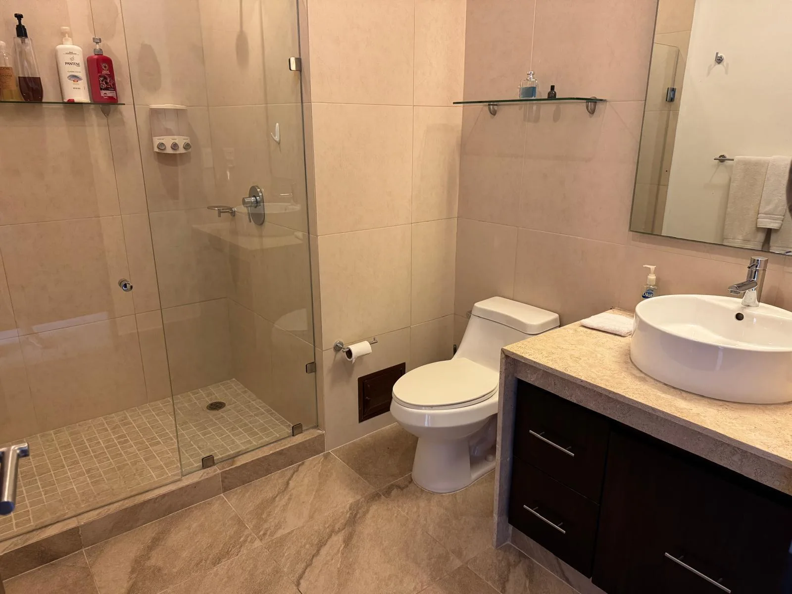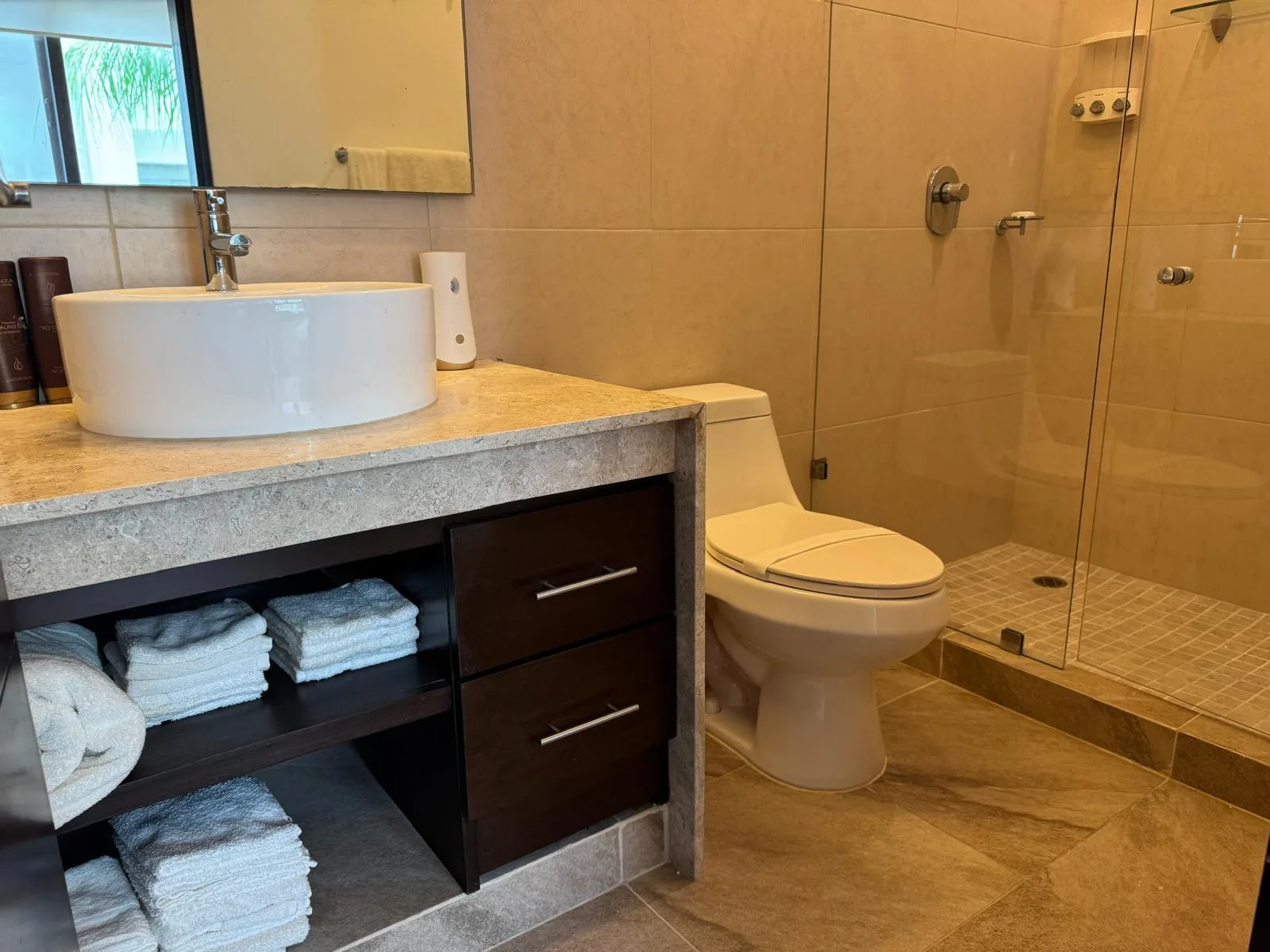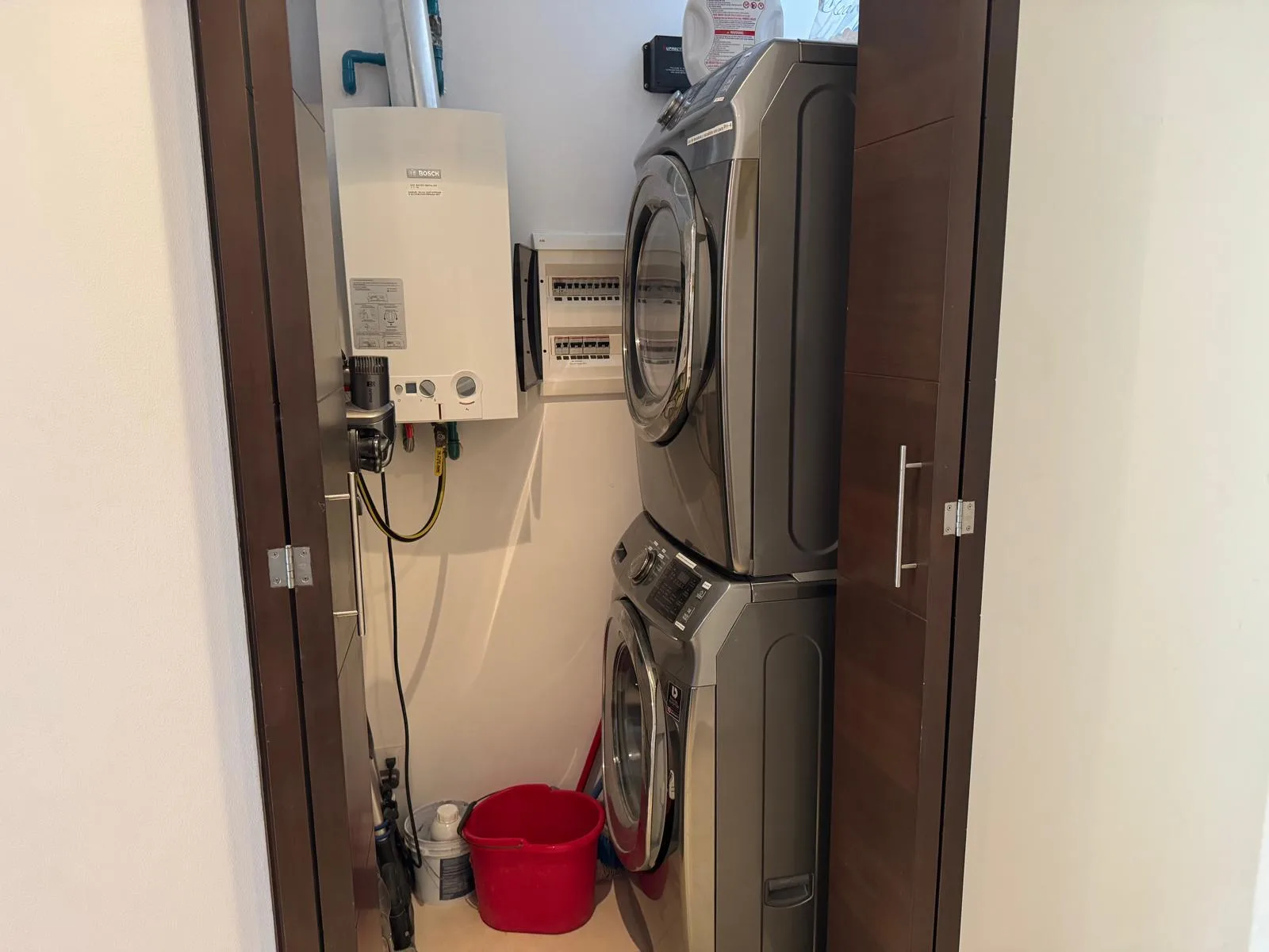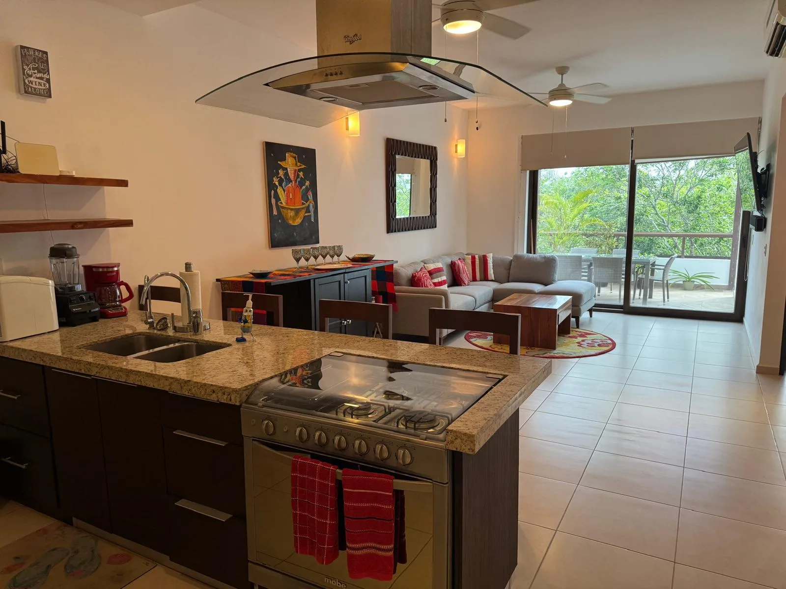 This spacious, fully furnished two-bedroom, two-bathroom penthouse is located in the TAO community within Bahia Principe. The contemporary residence features an open-concept layout with a well-appointed kitchen complete with granite countertops, a full-size gas stove, a refrigerator, and a breakfast bar. Additional upgrades include nine solar panels, an on-demand water heater, a reverse osmosis system in the kitchen, and a full-house water filtration system. A dedicated laundry area with a washer and dryer is provided.