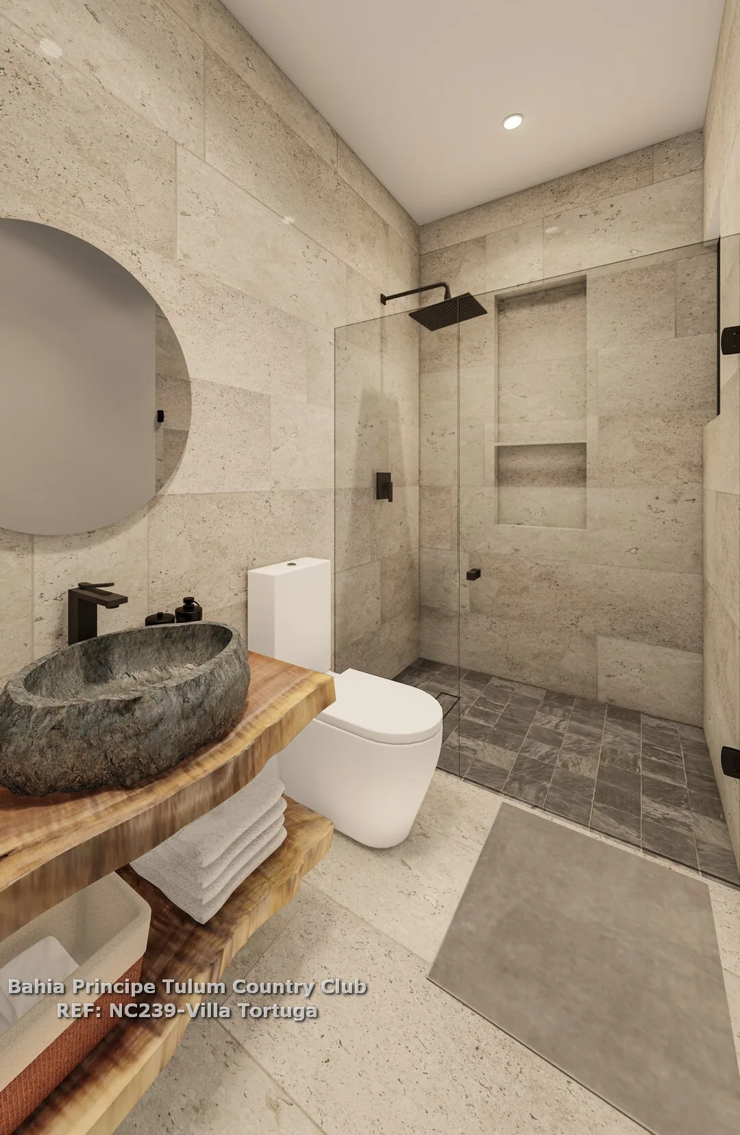 The villa is situated in the heart of the Riviera Maya, near beaches and archaeological sites. The community provides access to the PGA Riviera Maya golf course, restaurants, and clubhouses.